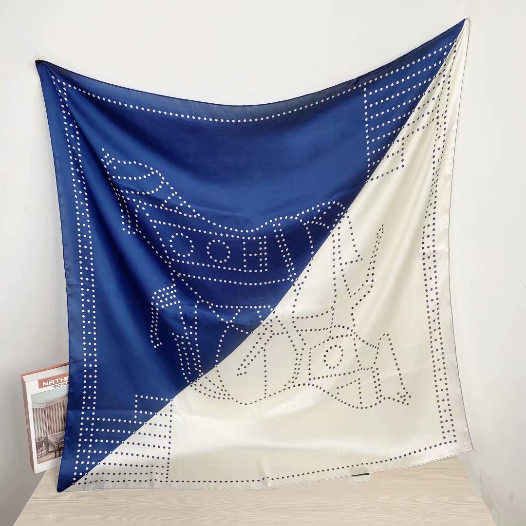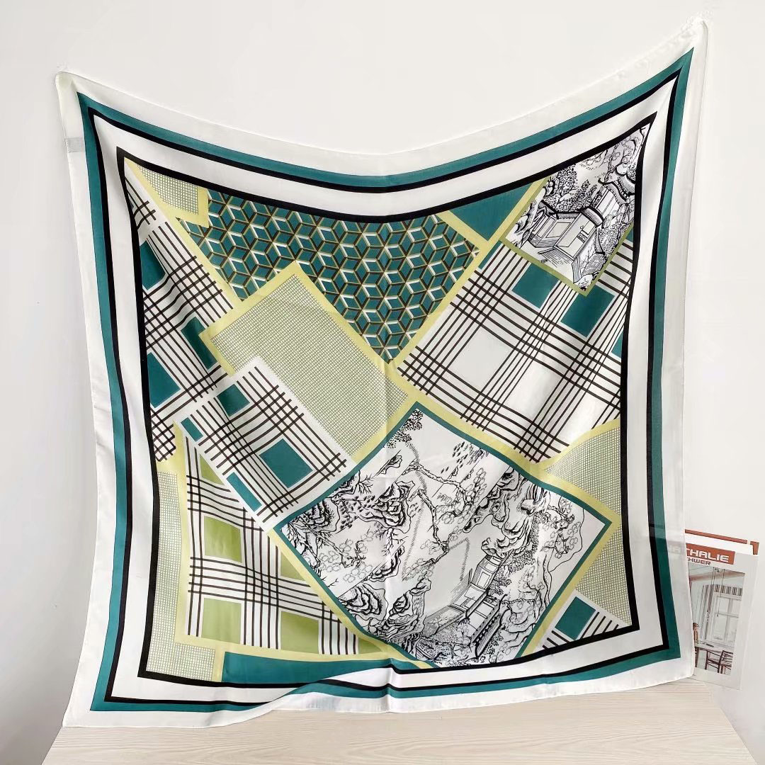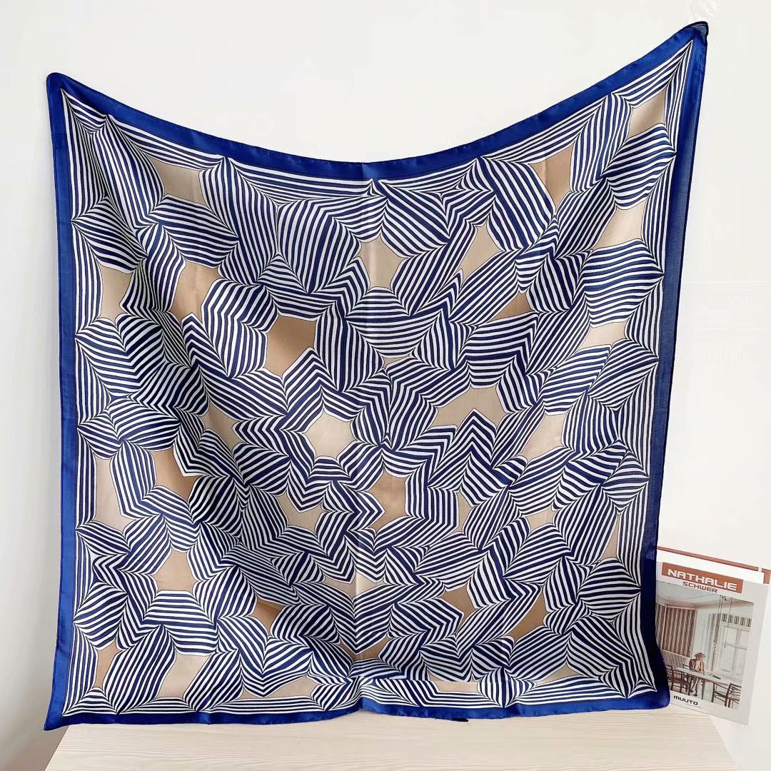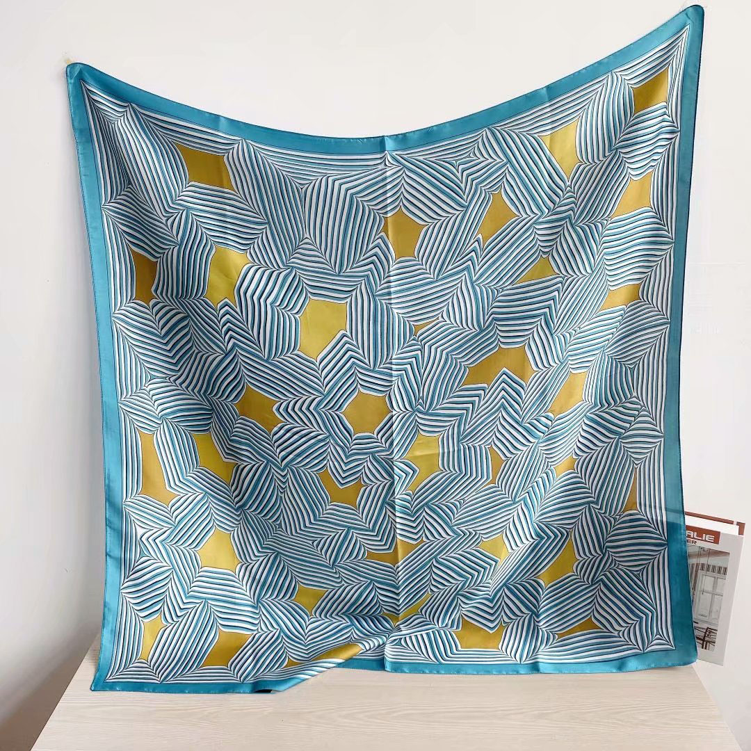 New silk satin 90*90 imitation silk European and American street large square scarf with simple letter stripes is available for export