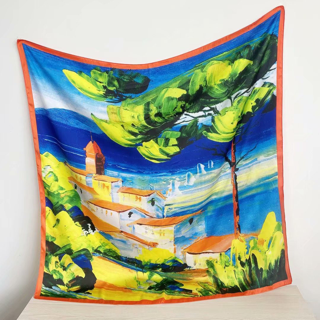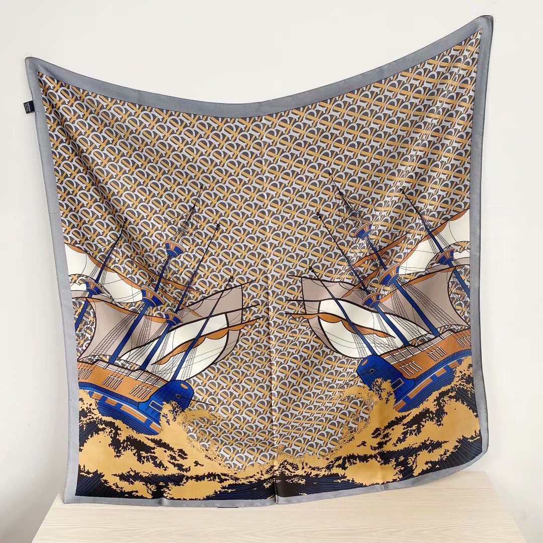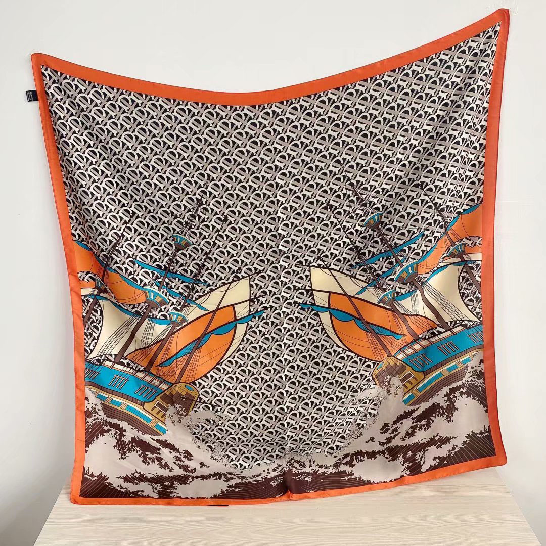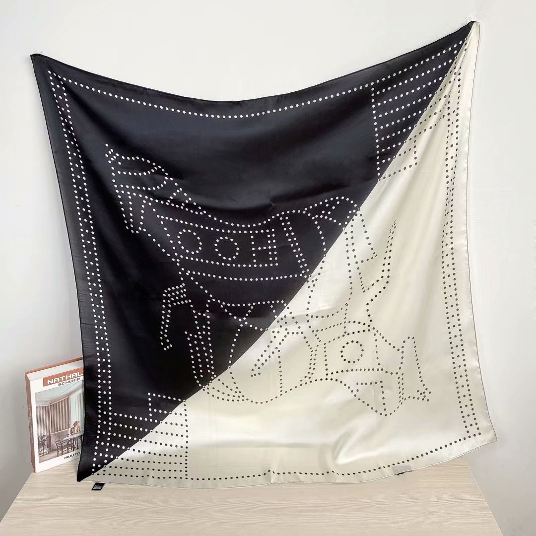 New silk satin 90*90 imitation silk European and American street large square scarf with simple letter stripes is available for export