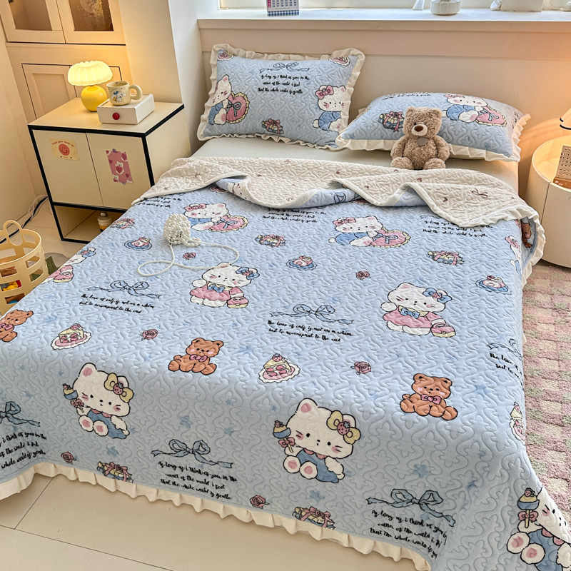 New single-piece winter coral fleece anti-slip quilted tatami bed sheet set with milk fleece and cotton edge cover