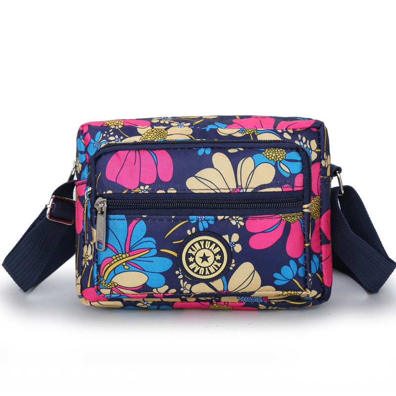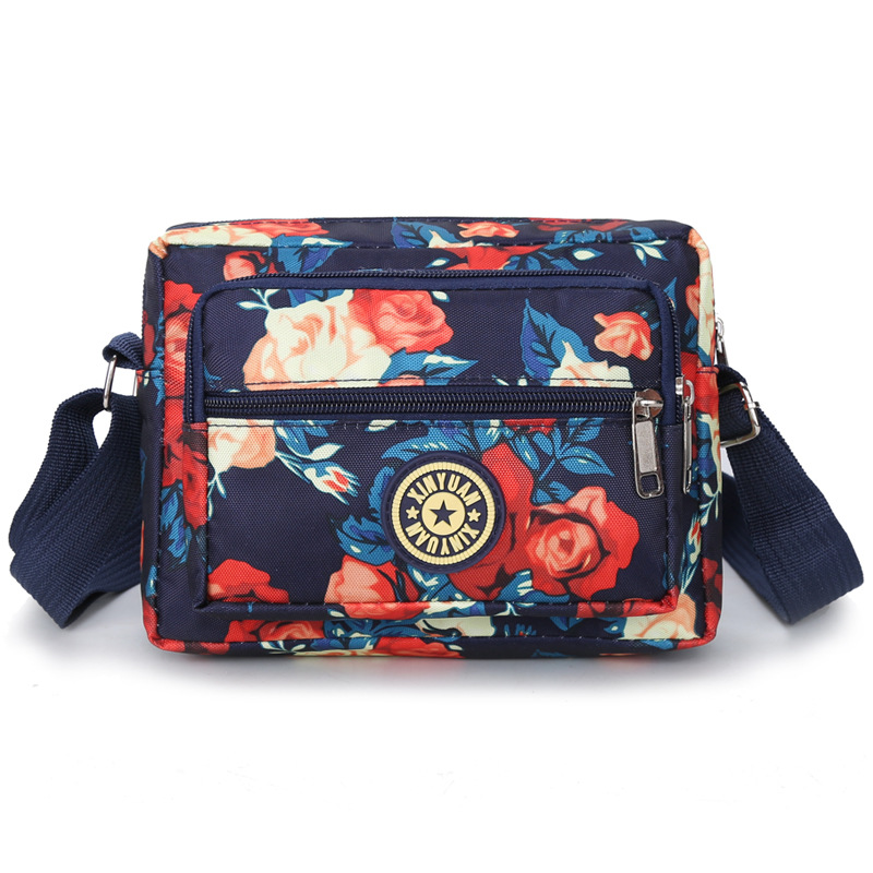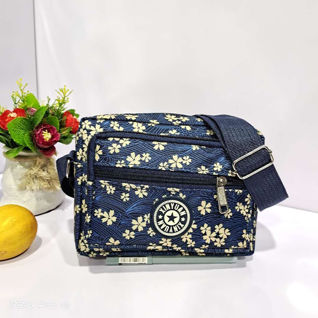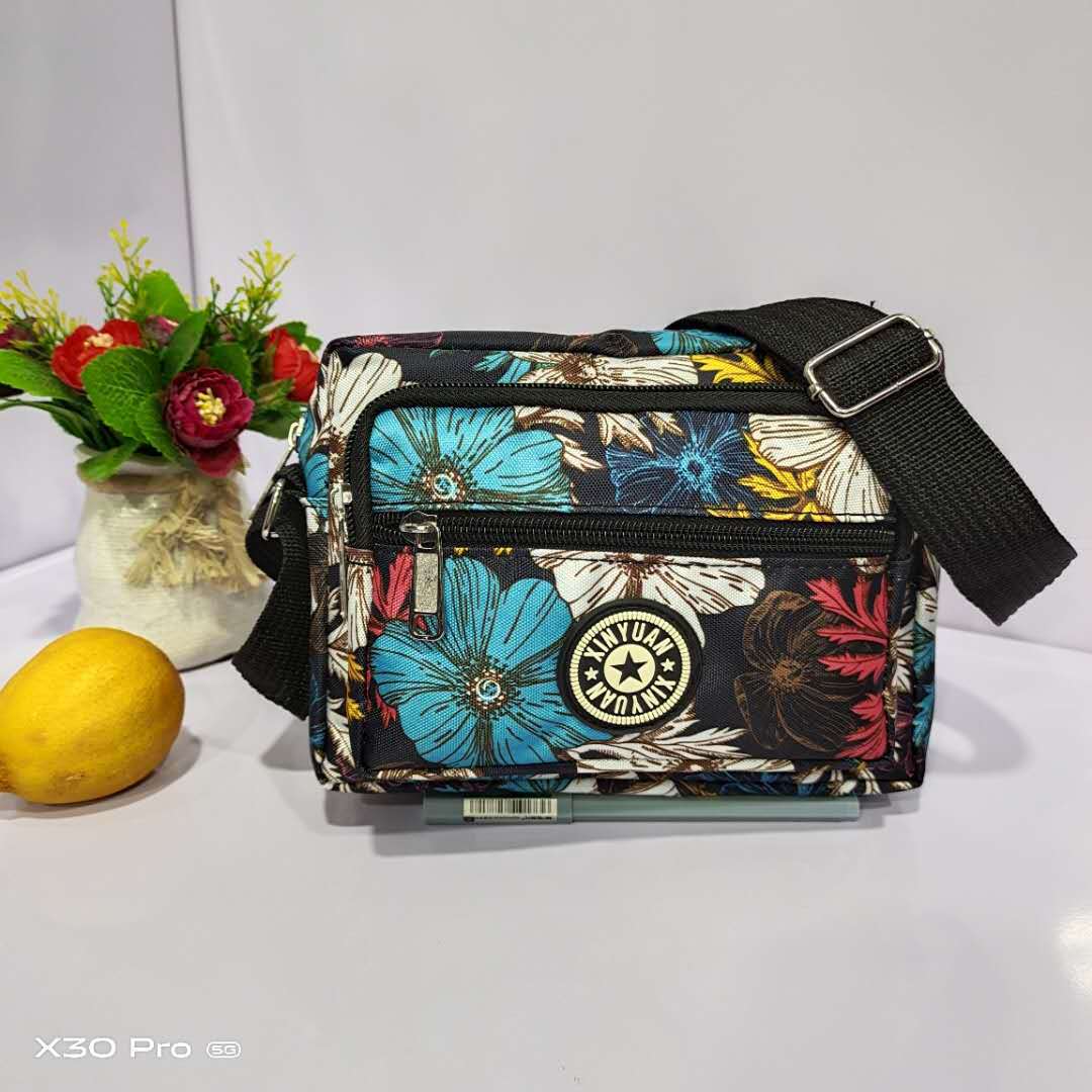 New single-shoulder floral fabric crossbody bag, Korean version nylon fabric multi-layer single-shoulder bag, women's casual small square bag