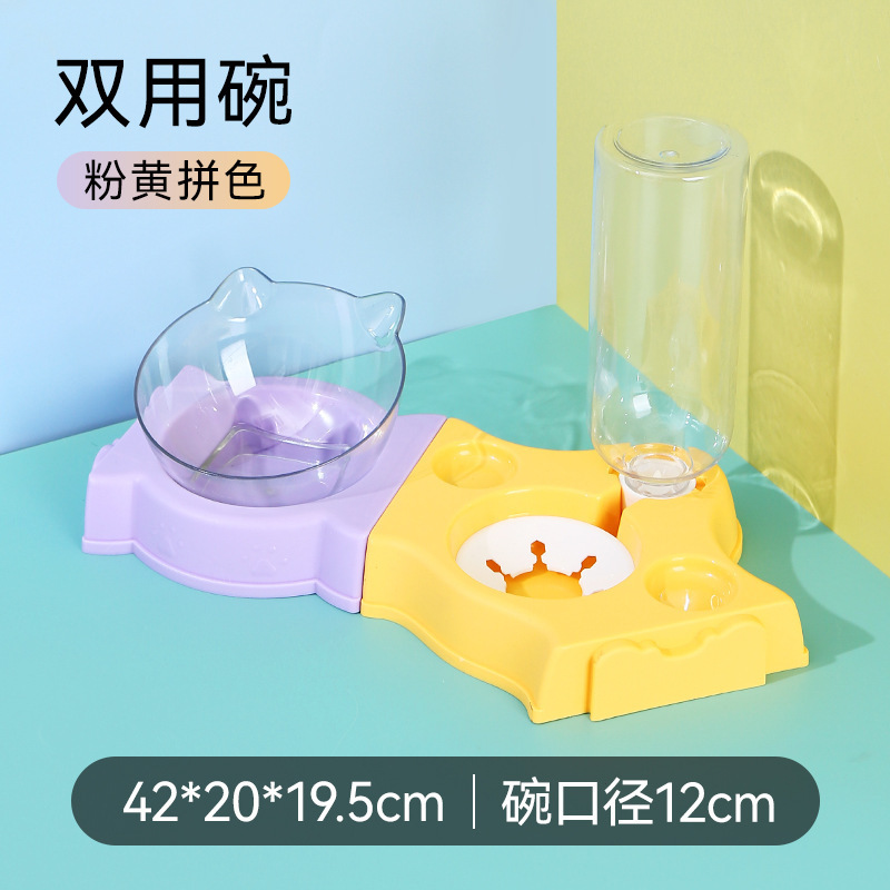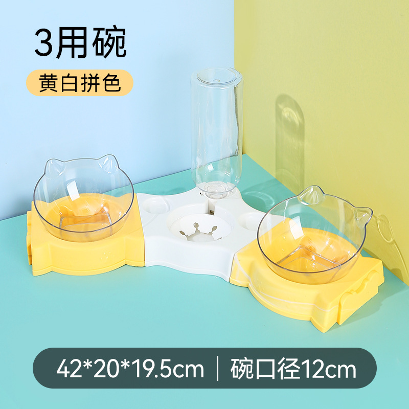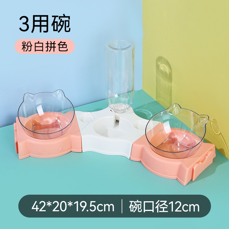 New slanted pet bowl, three-in-one slanted neck guard cat bowl, dog food bowl, automatic water storage, no wet mouth, pet supplies