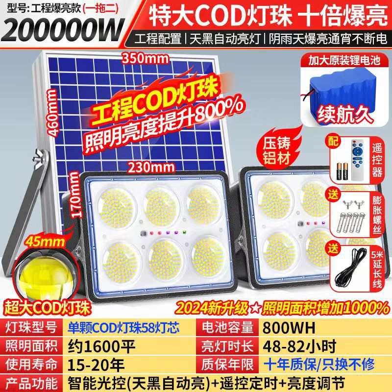New solar floodlights, one-to-two outdoor engineering ultra-bright searchlights, large-sized large lights for construction sites and courtyards