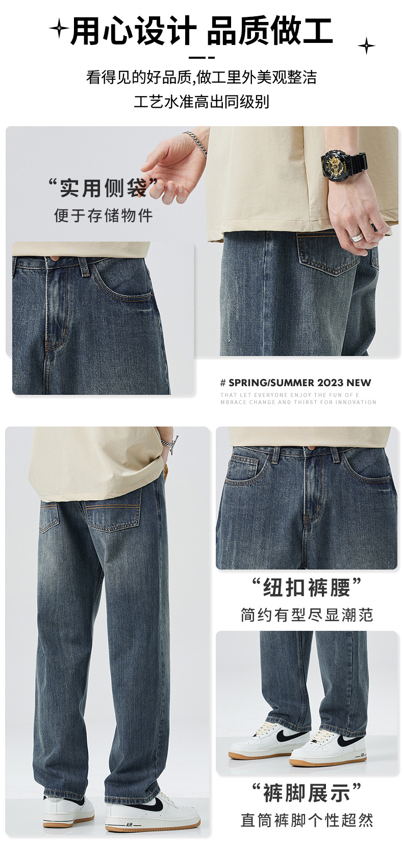 New spring and summer jeans for men, straight-leg loose men's jeans, Haren pants, a trendy brand, fashionable and popular pants for men
