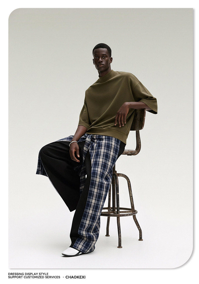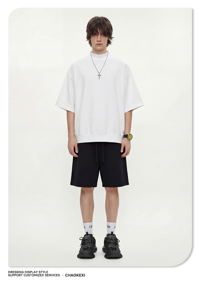 New spring men's export T-shirt, American retro solid color BOXY version, high weight 305G, loose pure cotton top