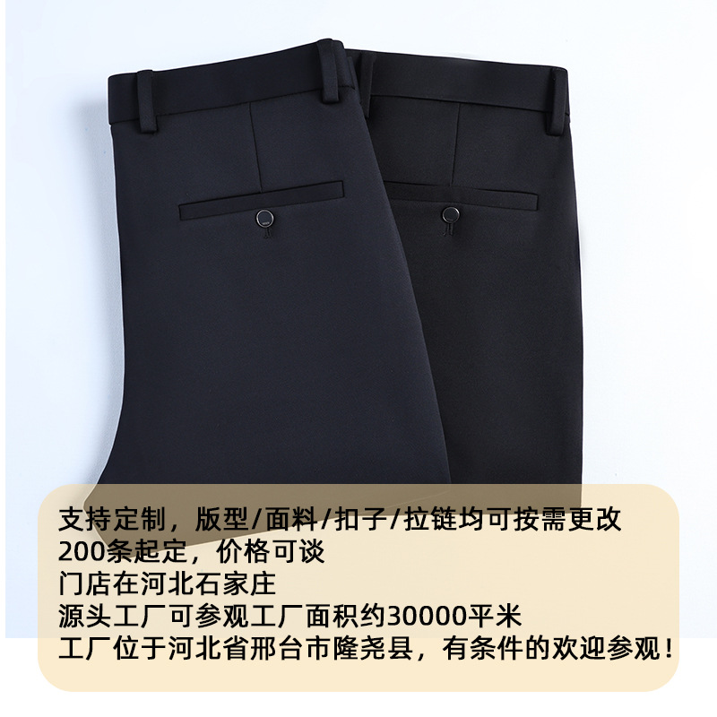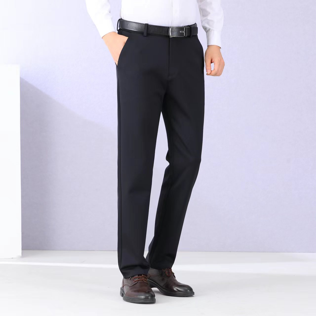 New Spring/Summer 2024 stretch men's casual dress pants, high-waisted, no-iron, slim, straight-leg business formal wear