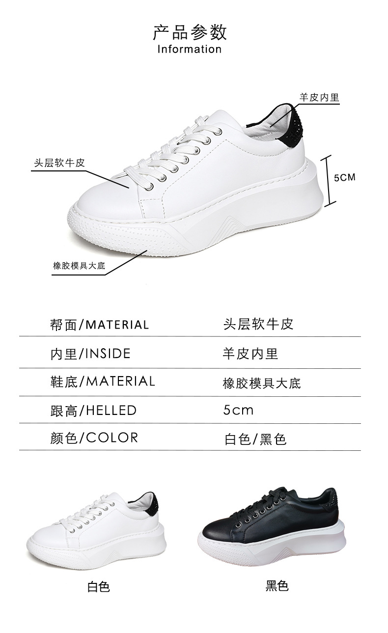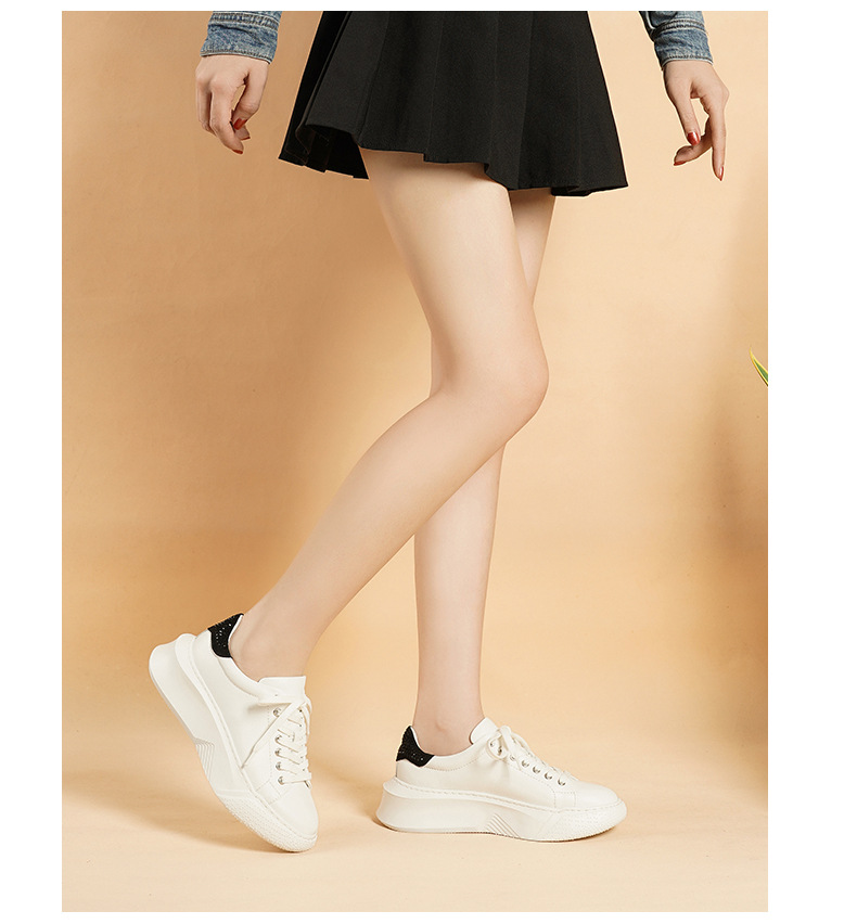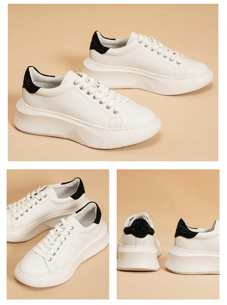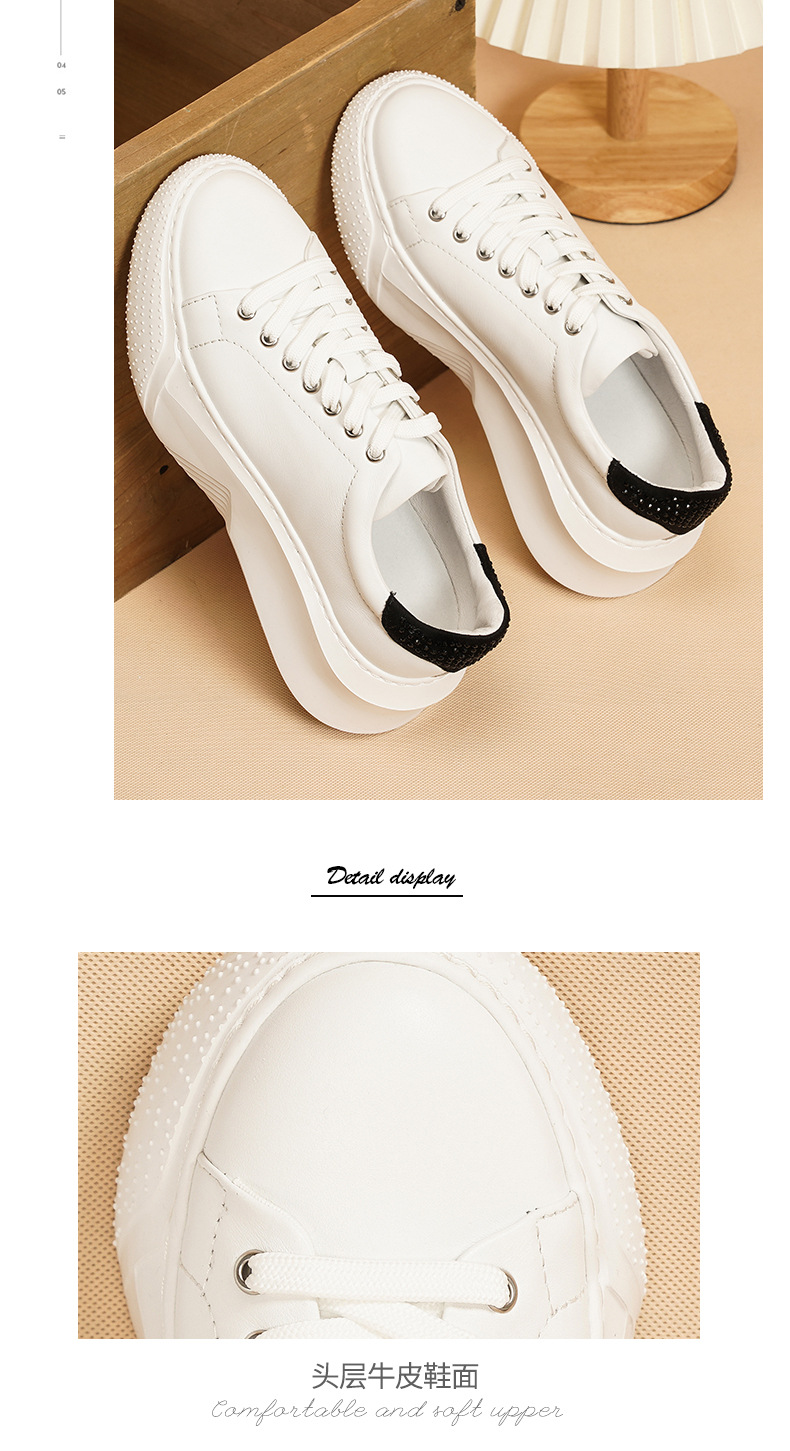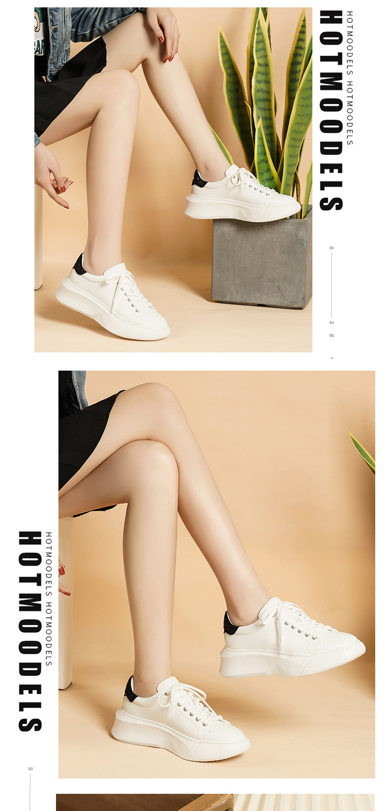 New Spring/Summer 2025 white sneakers, thick-soled cowhide top layer casual height-increasing shoes, fashionable, elegant and versatile women's shoes