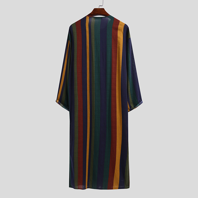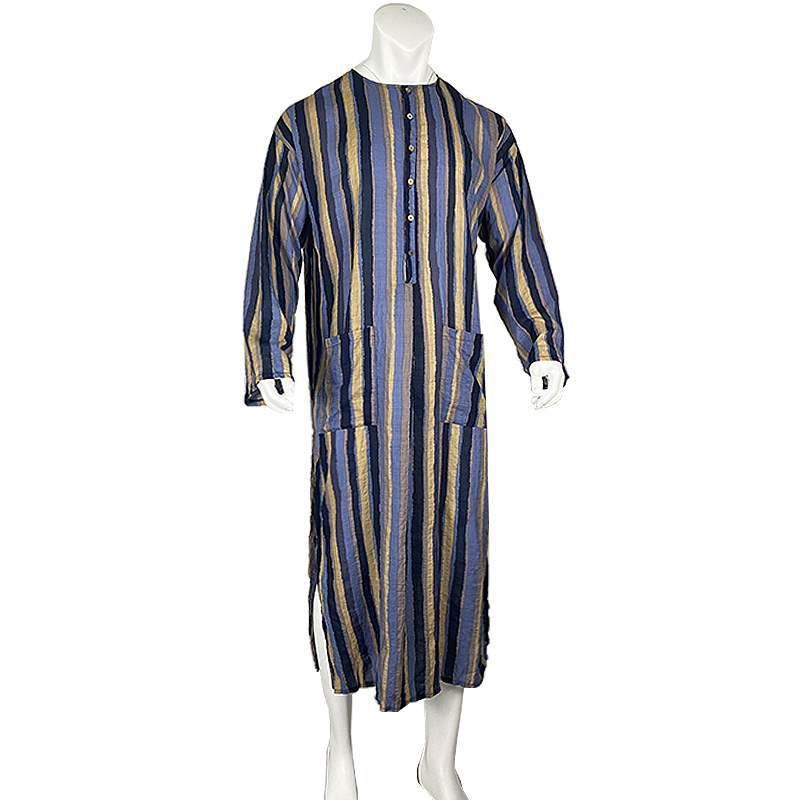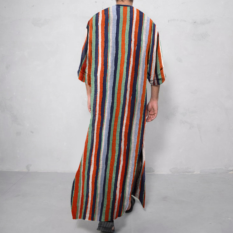 New Spring/Summer Middle Eastern clothing for foreign trade: Long-sleeved one-piece Arab men's striped printed Muslim men's robe