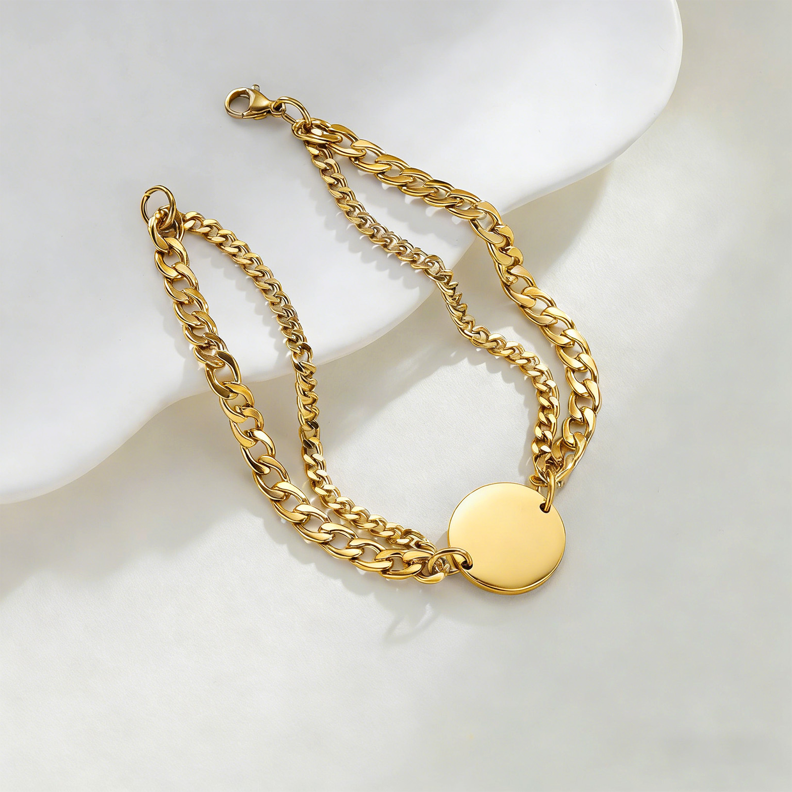 New stainless steel round pendant bracelet set for couples on Amazon cross-border from Europe and America