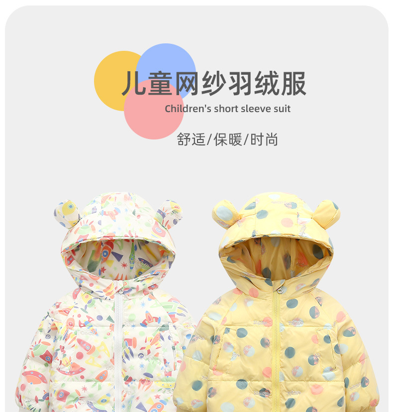 New style of children's down jacket, Korean-style white duck down with mesh fabric for boys and babies, thick and warm trendy coat for girls in autumn and winter