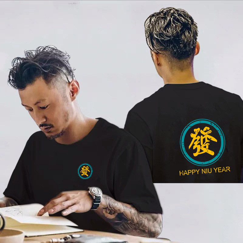 New summer Chinese trend short-sleeved T-shirts for men, pure cotton, fashionable for young men and women, loose undershirt, solid color round neck men's T-shirt