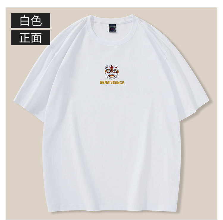 New summer short-sleeved T-shirt for men, with Chinese style lion dance embroidery, pure cotton, national trend, loose and large size, half-sleeved for students, casual