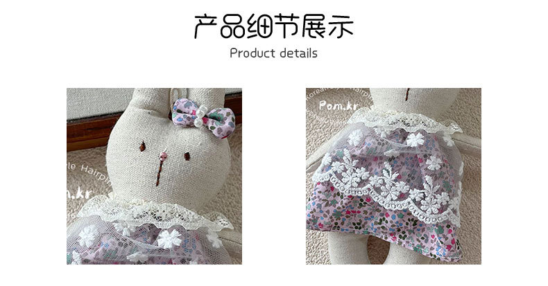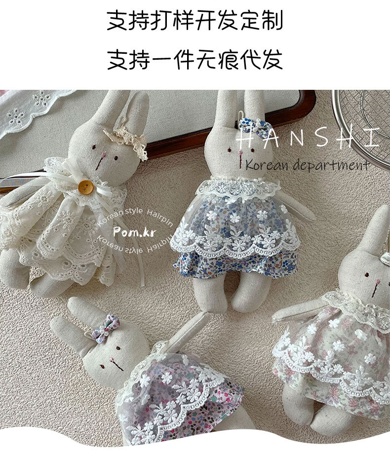 New sweet lace rabbit doll fabric floral dress, small doll pendant, girl's decorative doll