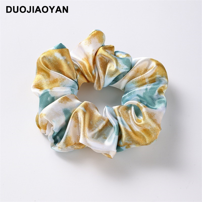 New tie-dyed printed large intestine hair band with a high-end feel, large size with diamonds, high ponytail tie and high elasticity hair band wholesale