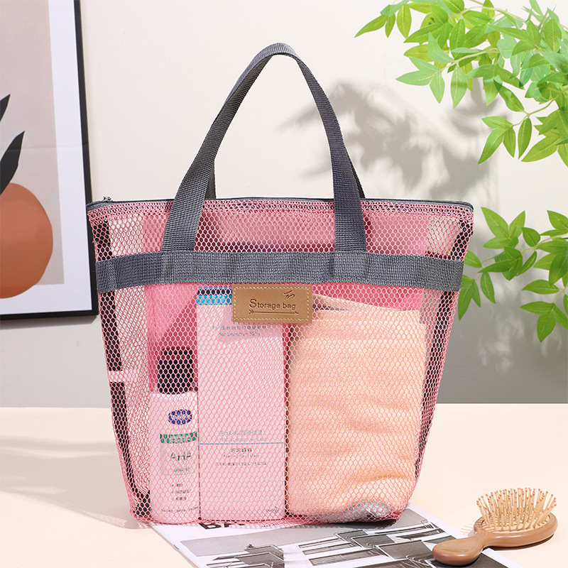 New travel convenience mesh storage toiletry bag manufacturer wholesale cross-border hand-held beach bag, large-capacity swimming bag
