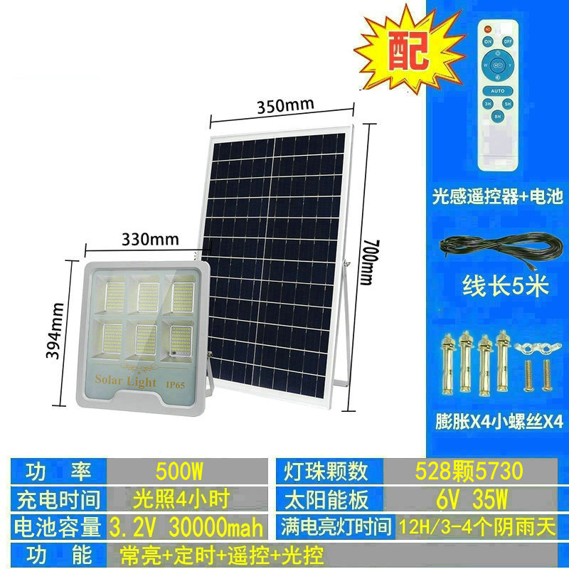 New type solar floodlight, outdoor waterproof garden sensor light, LED high-power split solar lighting lamp
