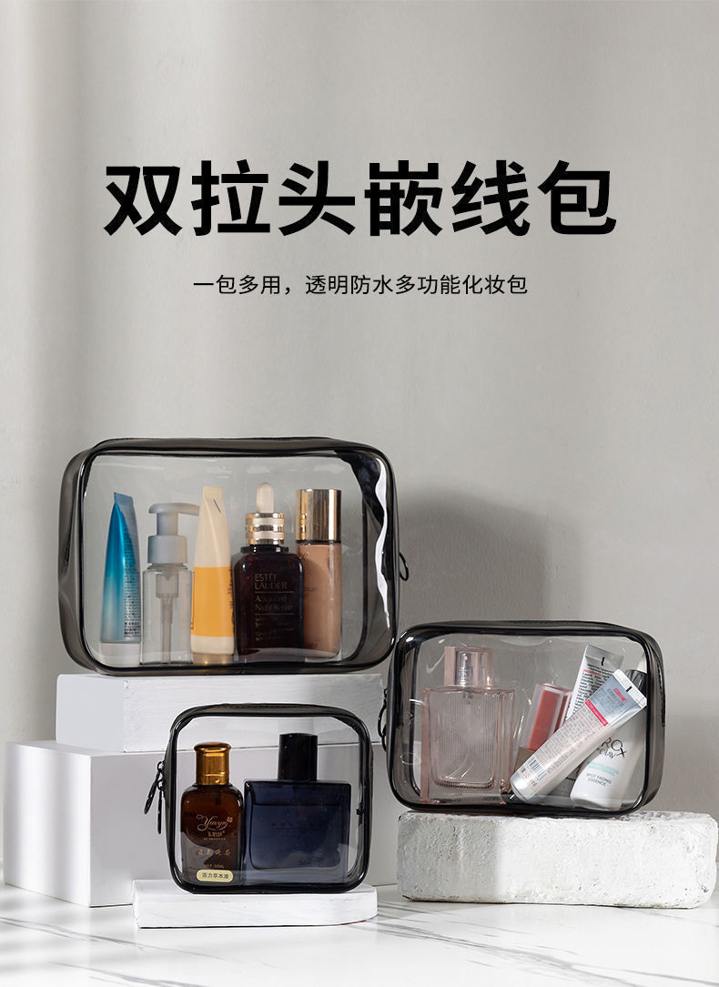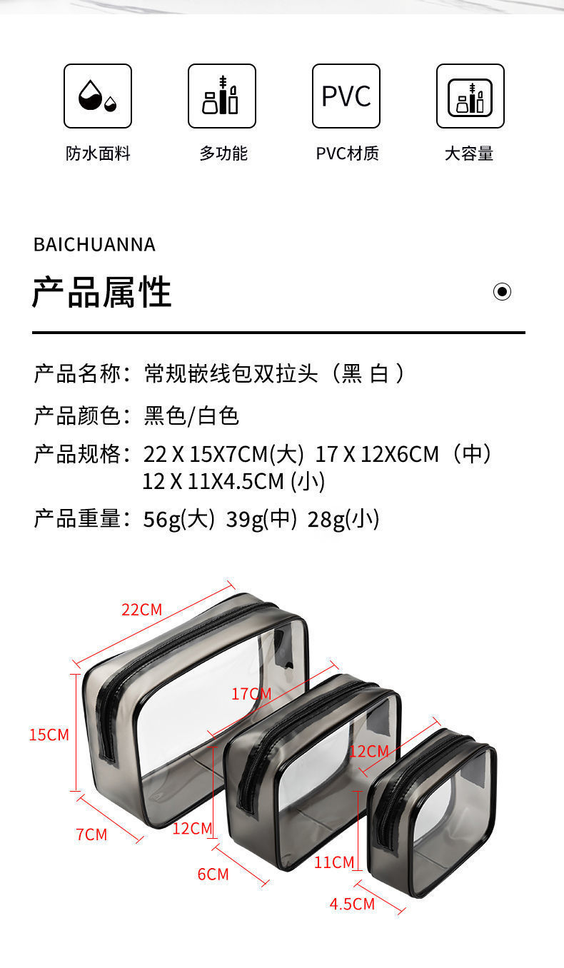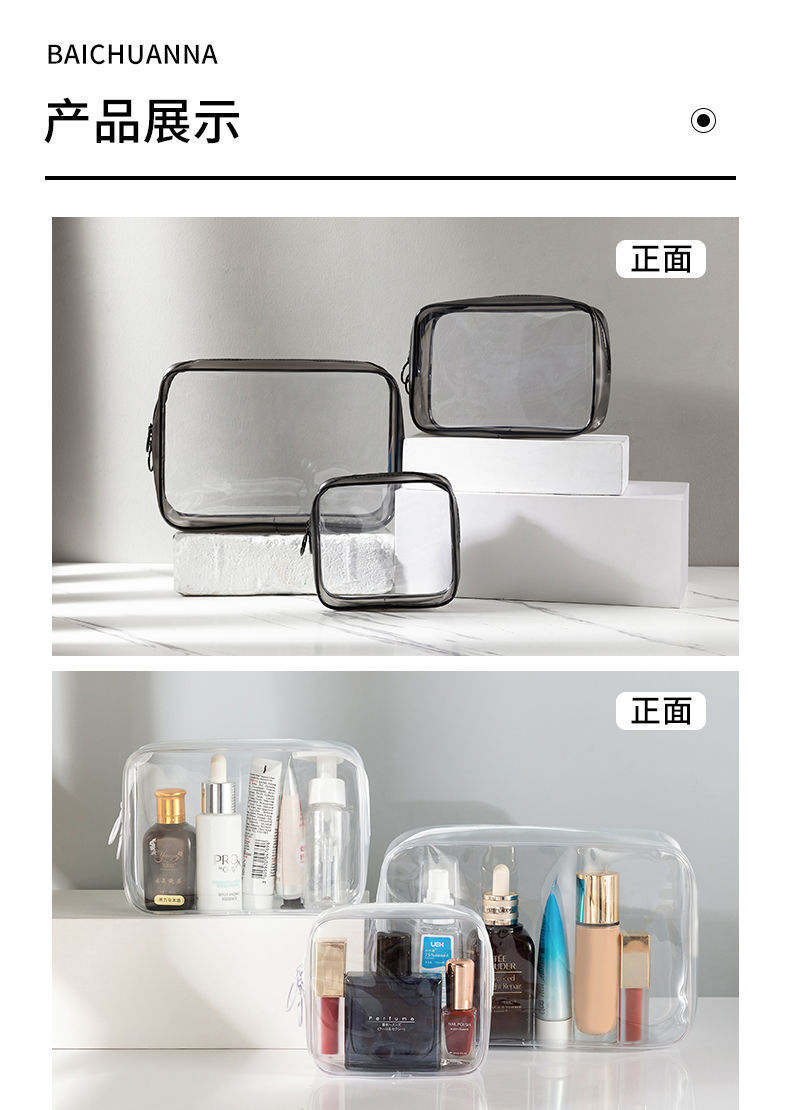 New waterproof pvc cosmetic bag, multi-functional storage bag, storage bag, transparent and eco-friendly pvc three-piece set for women's toiletries