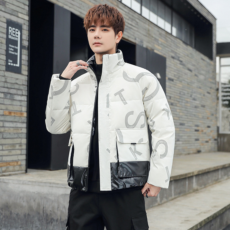 New winter down jacket for men, stand-up collar workwear, short white duck down, warm and thick casual down jacket for men