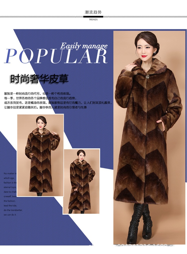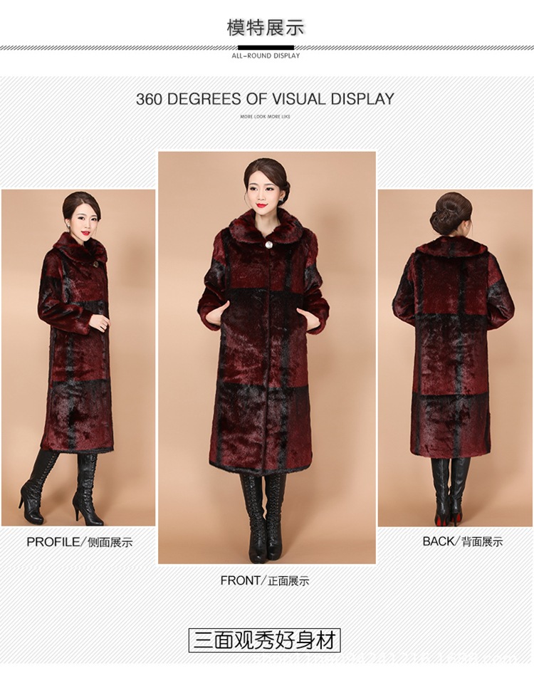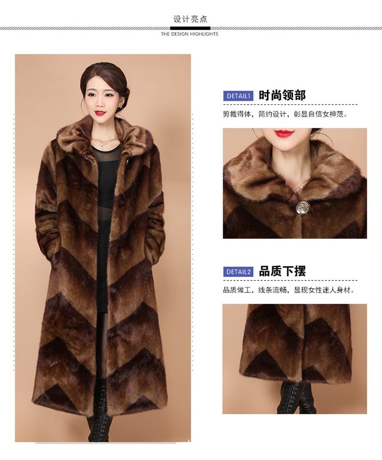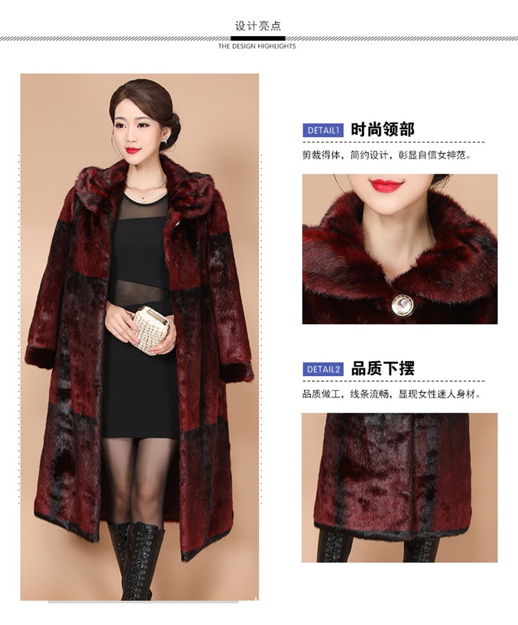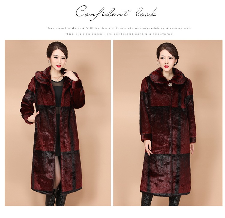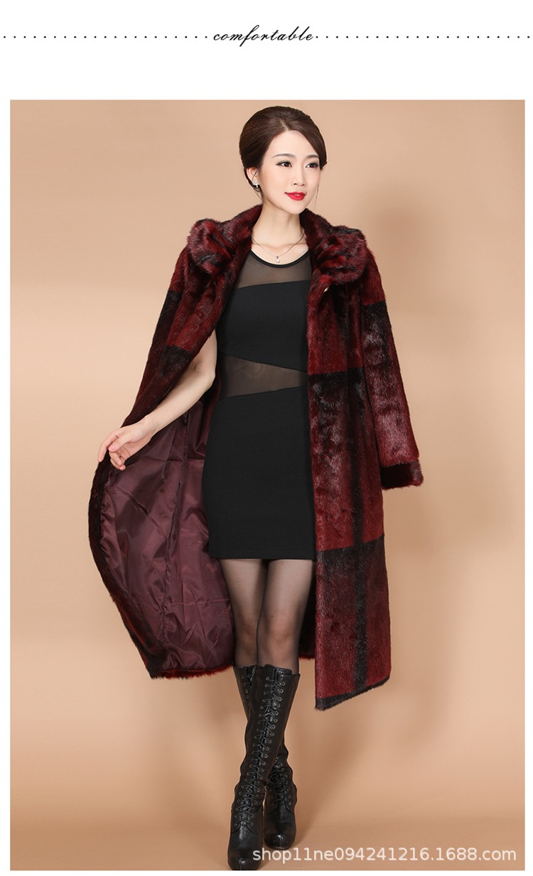 New winter faux fur coat, women's faux mink and mink velvet long fur coat, mom's large-sized extended coat