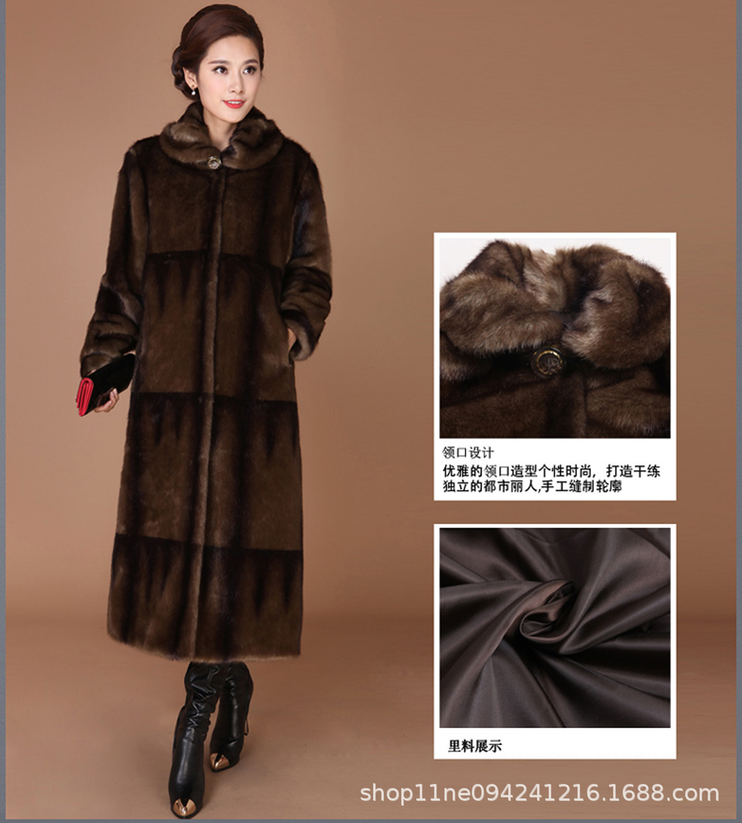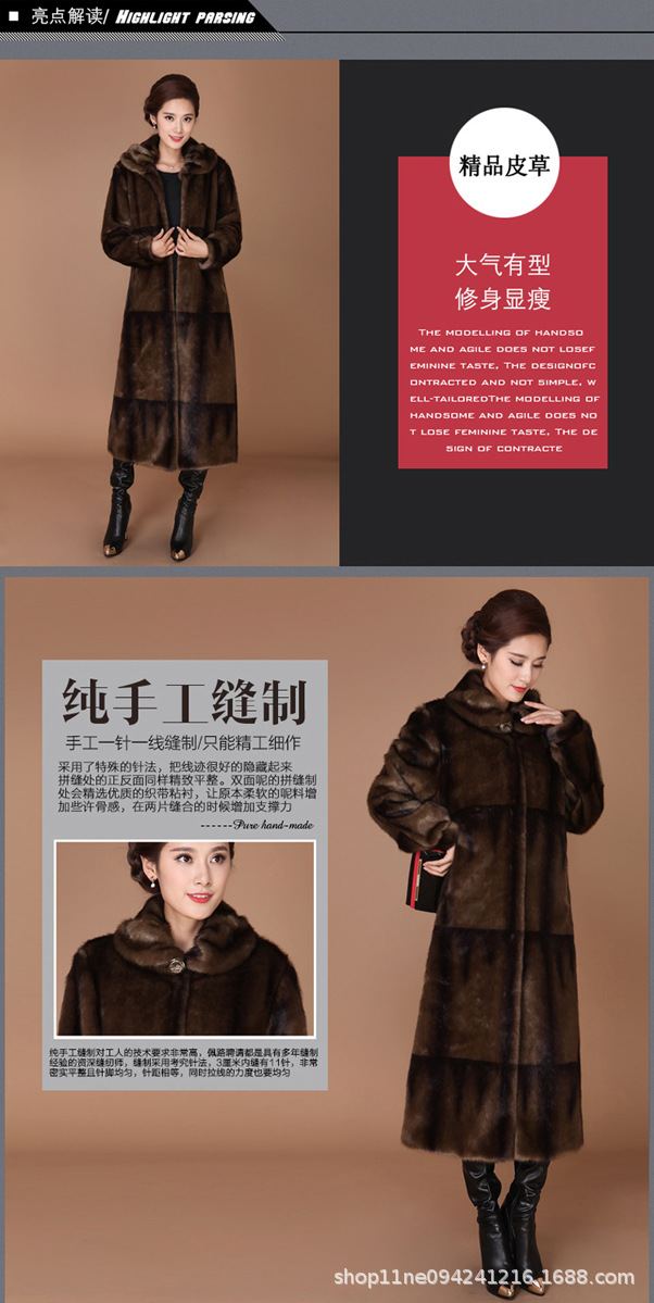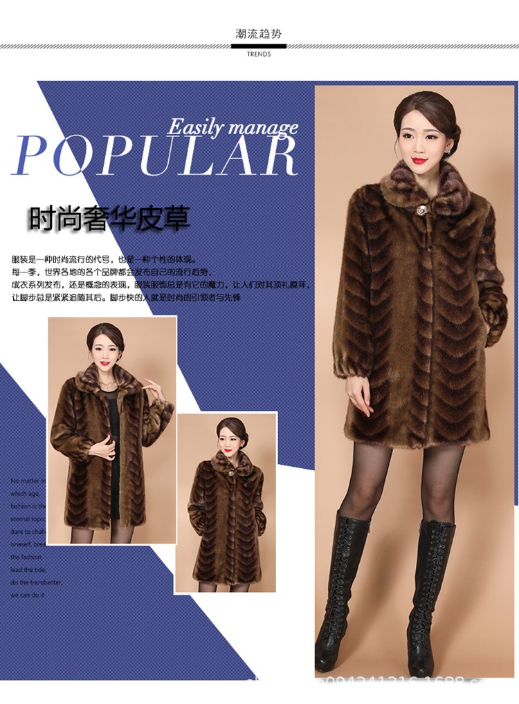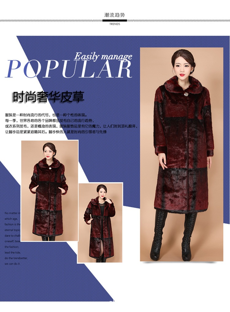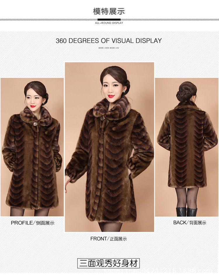 New winter faux fur coat, women's faux mink and mink velvet long fur coat, mom's large-sized extended coat