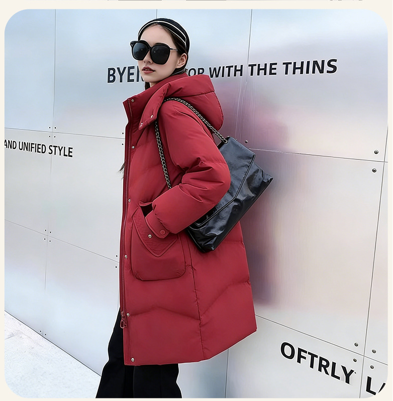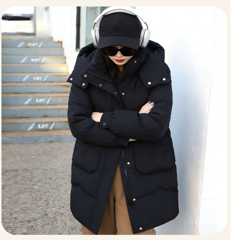 New winter women's down jacket, Korean-style women's wear, 90 duck down mid-length stand-up collar, warm and thick high-end down jacket