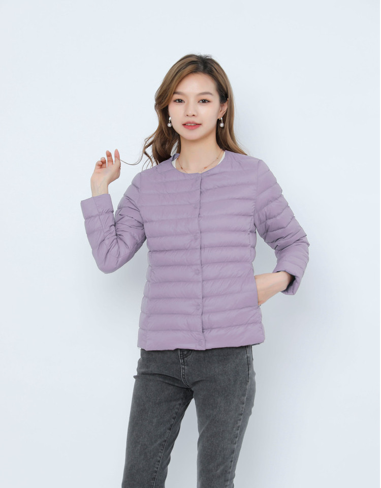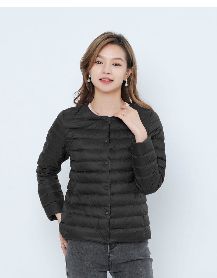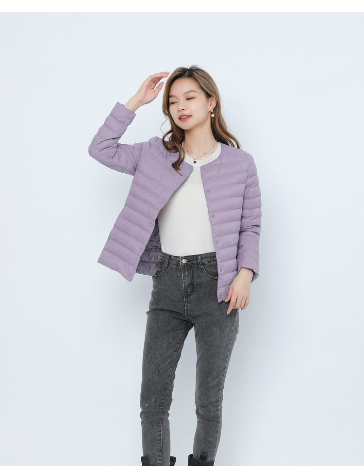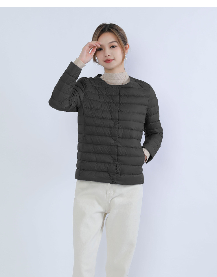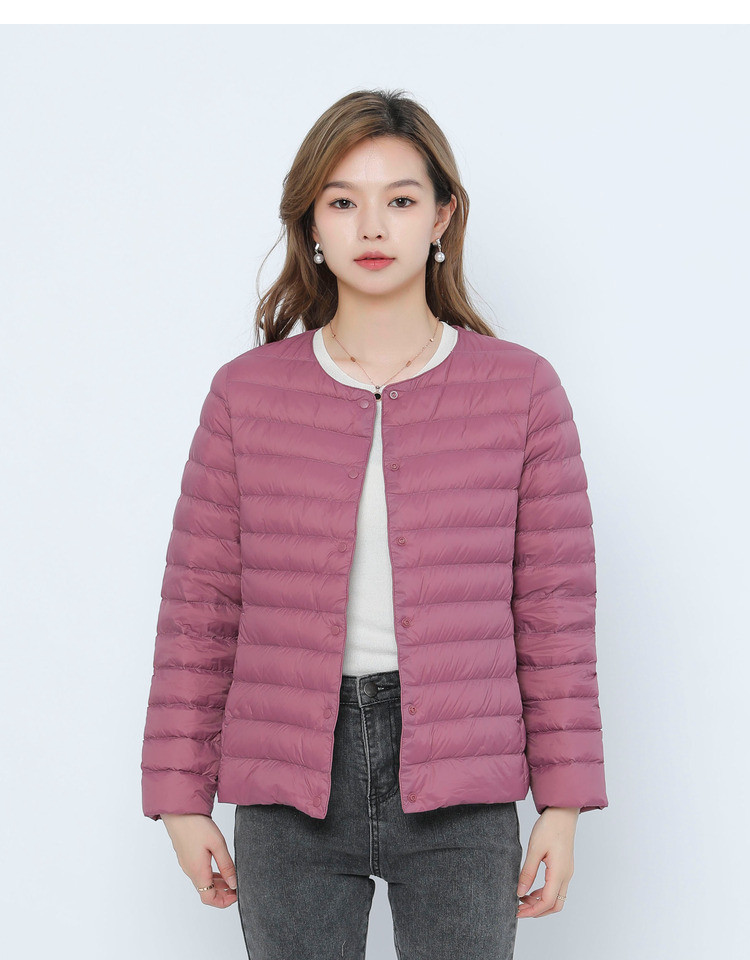 New women's 90-down solid color women's round-neck and V-neck simple long-sleeved down jacket, plus-size coat