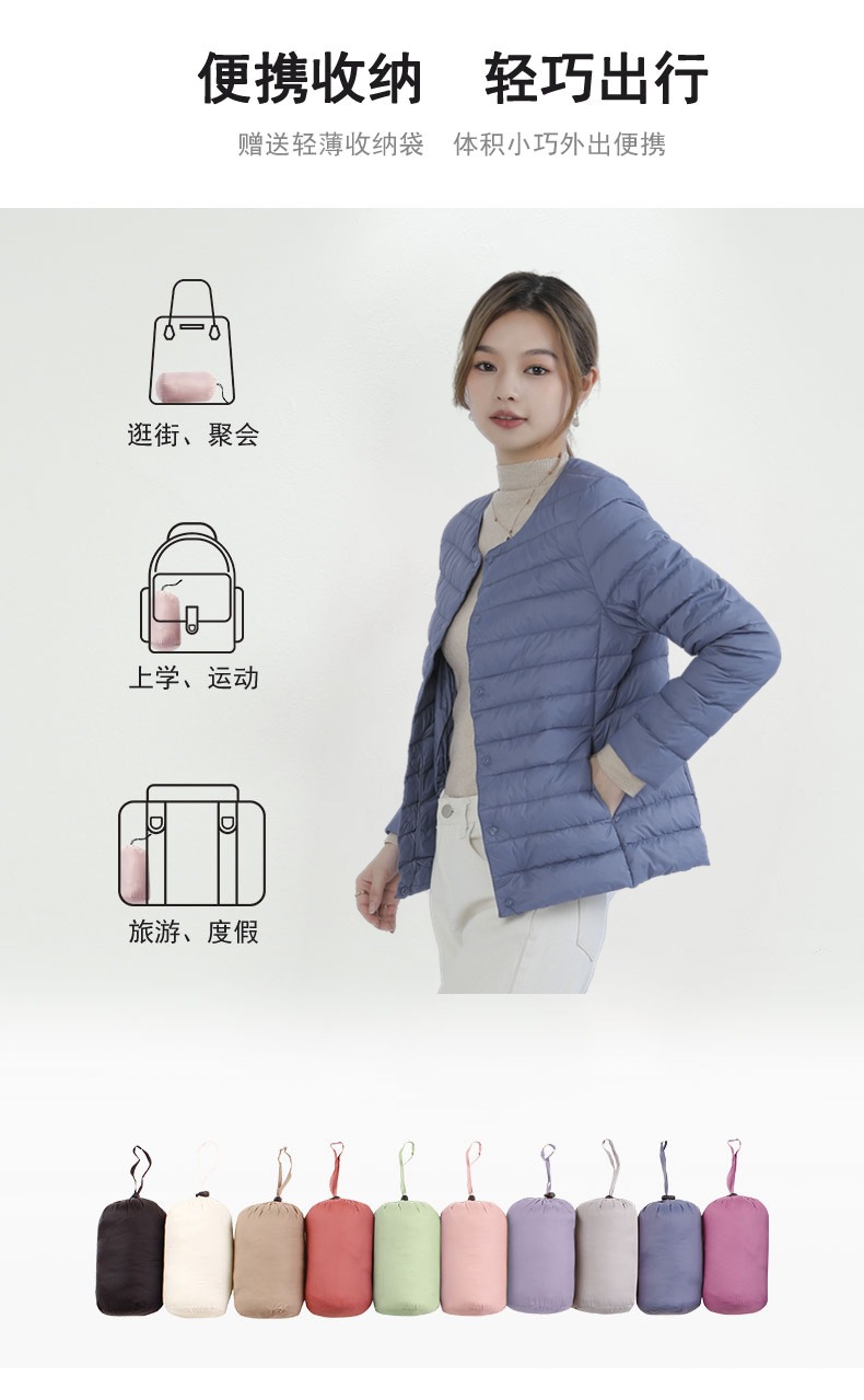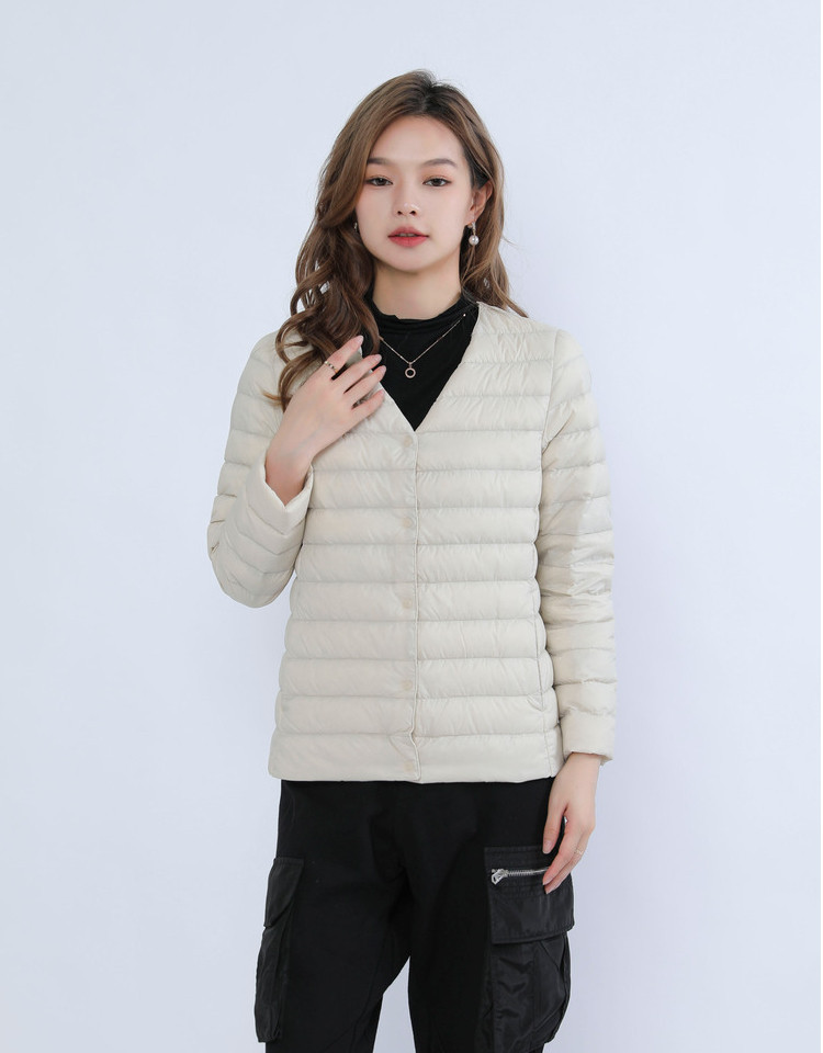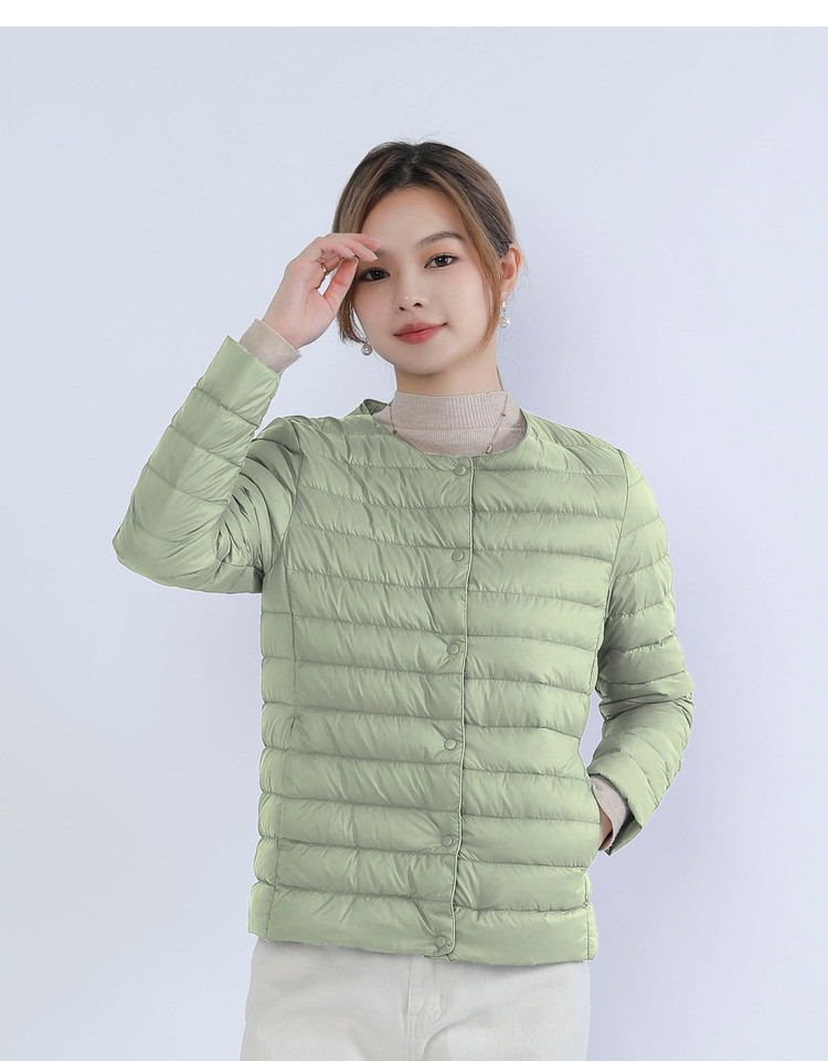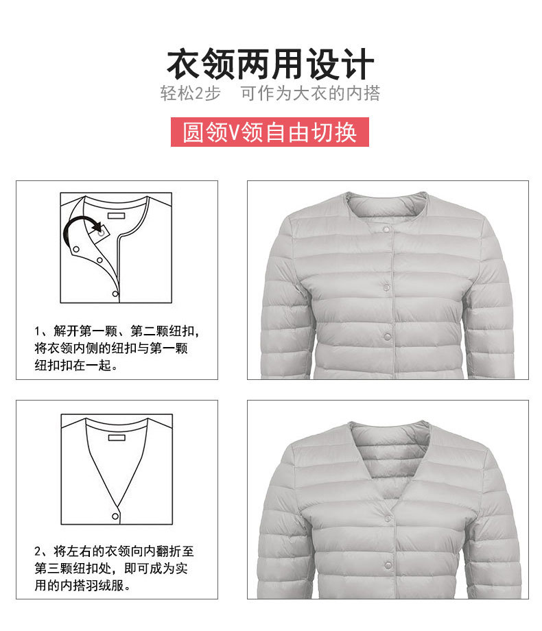 New women's 90-down solid color women's round-neck and V-neck simple long-sleeved down jacket, plus-size coat