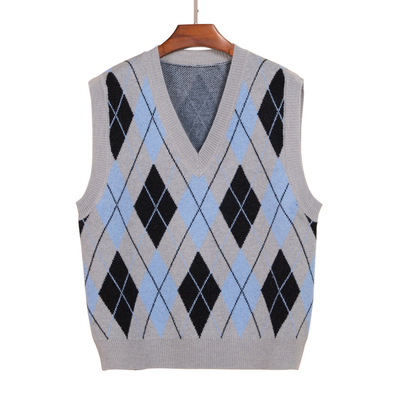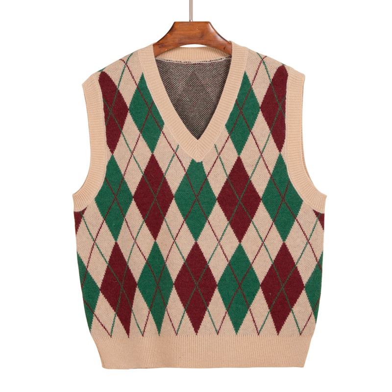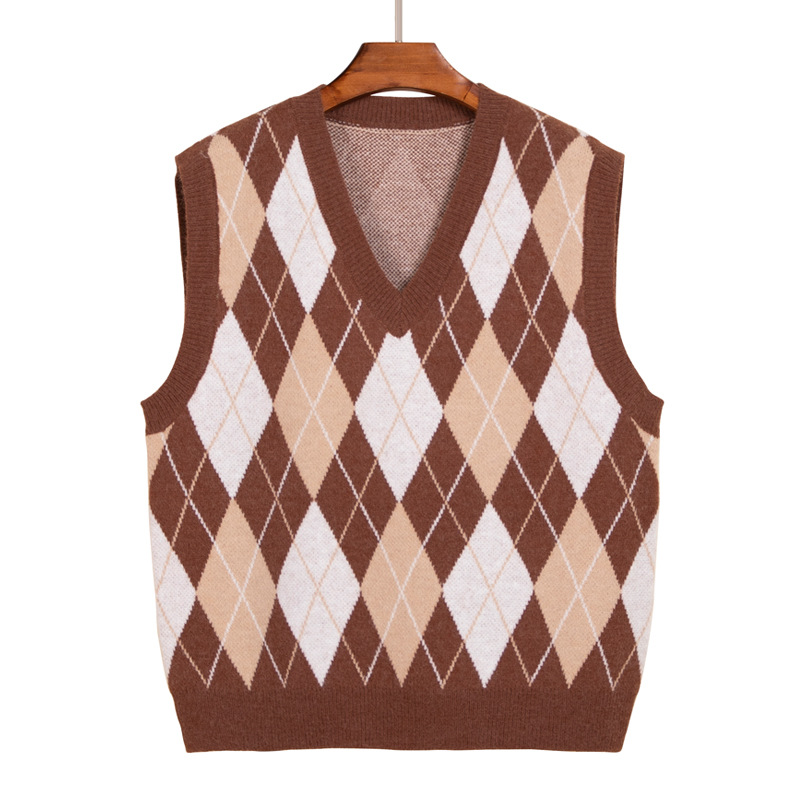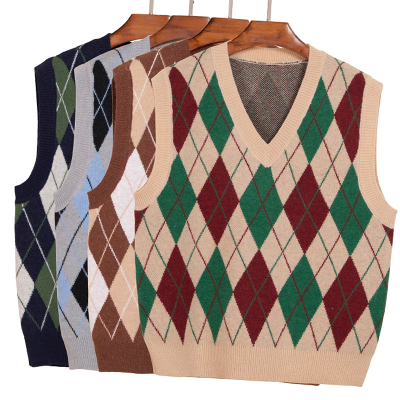 New women's diamond-shaped V-neck knitted waistcoat in stock, spring and autumn layered vest, elegant commuting sweater, vest for women