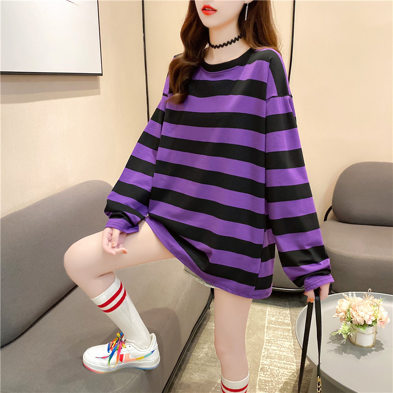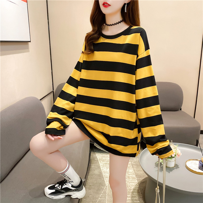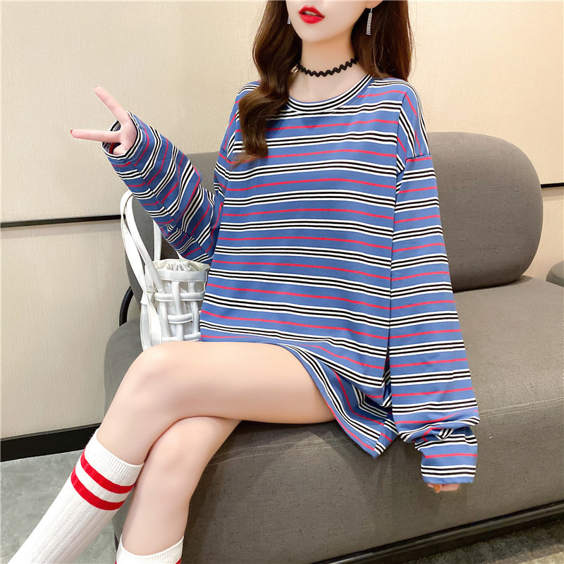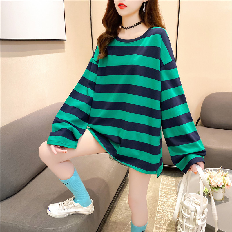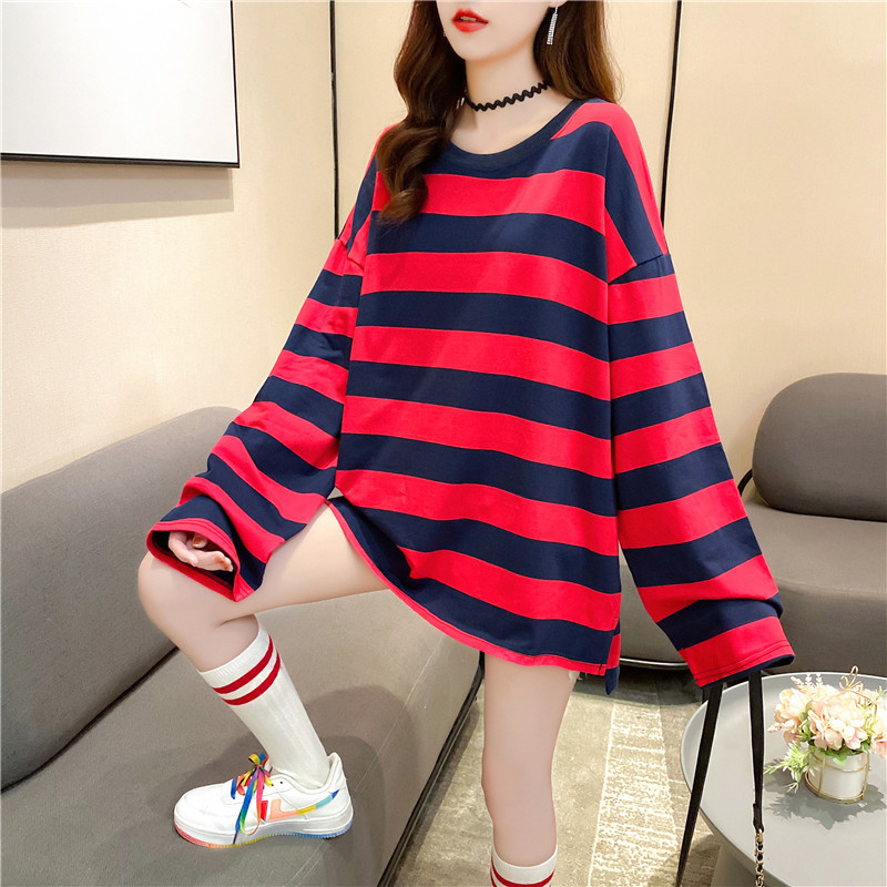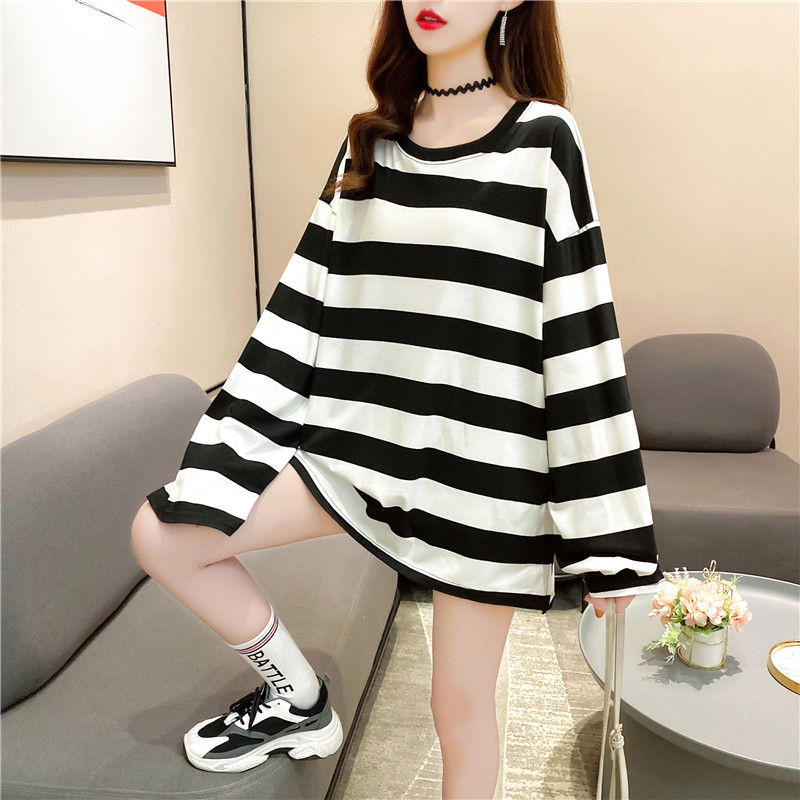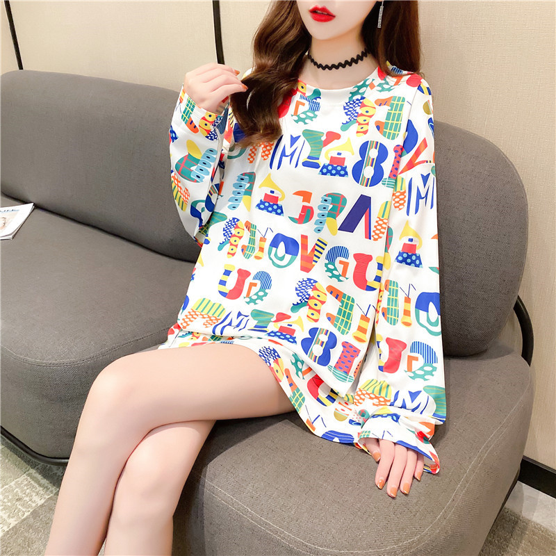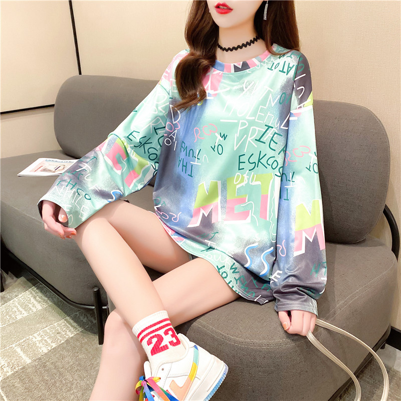 New women's long-sleeved T-shirt, loose mid-length, plus-size women's T-shirt, printed top, one-piece delivery for female students
