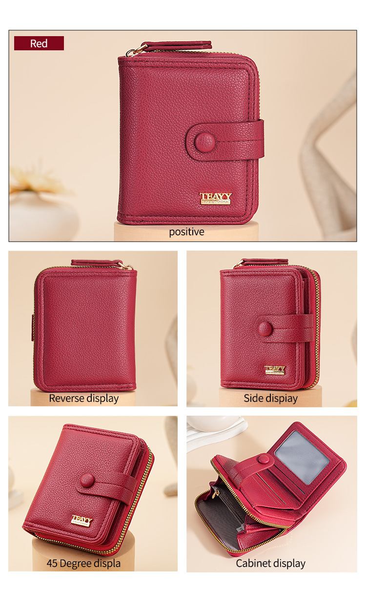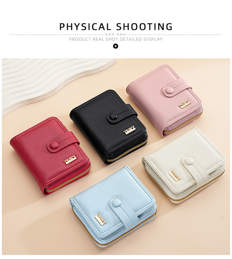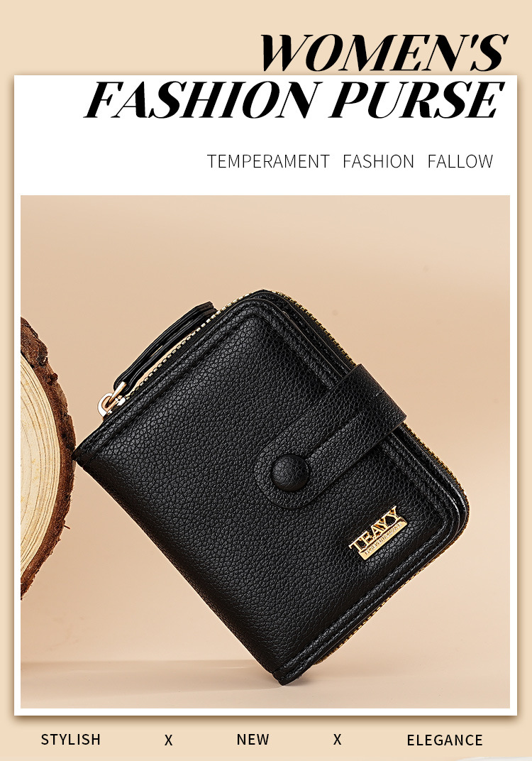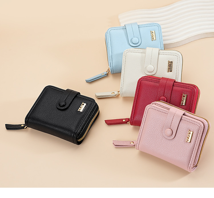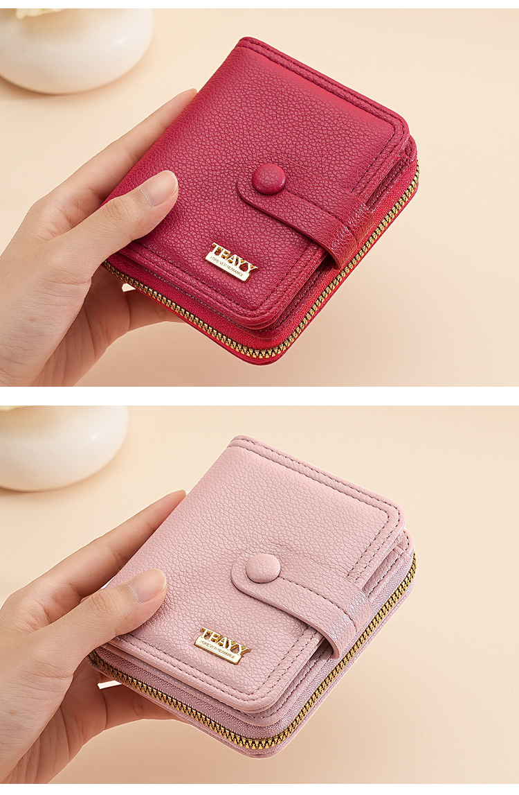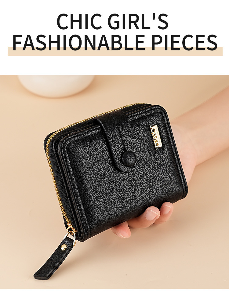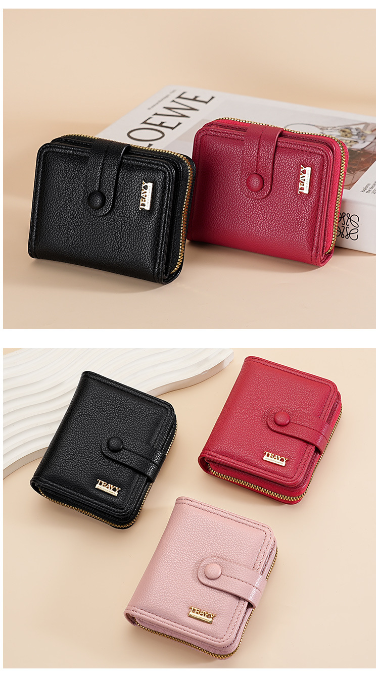 New women's wallet, short cross-border litchi pattern coin purse, high-end multi-functional wallet, large-capacity card case for women