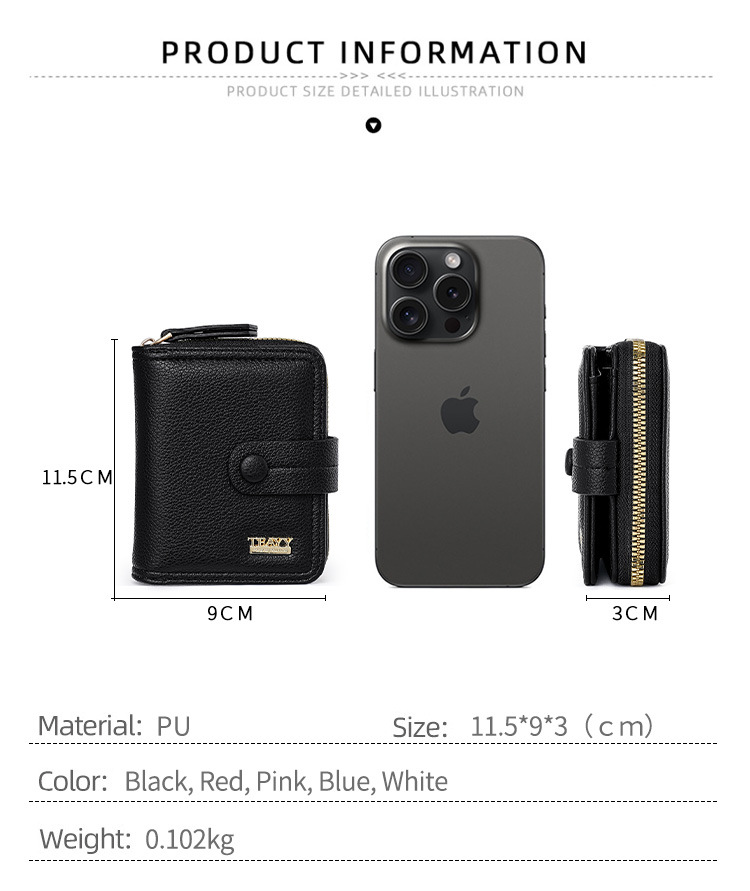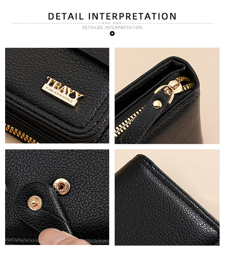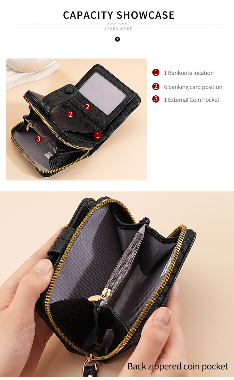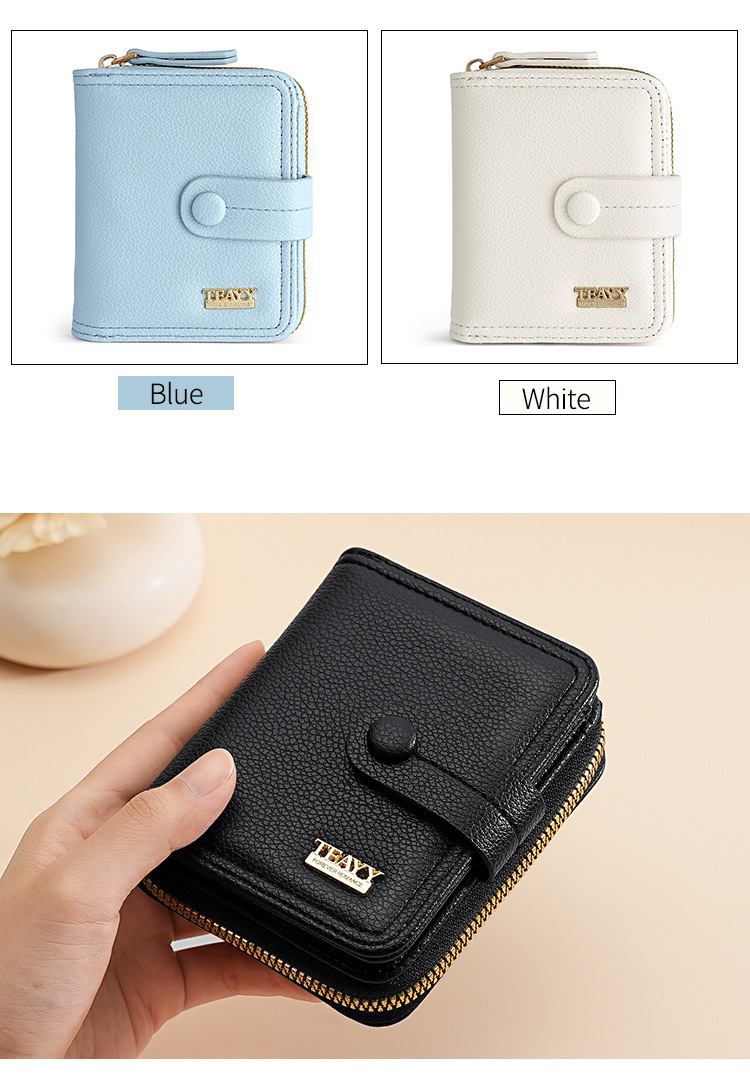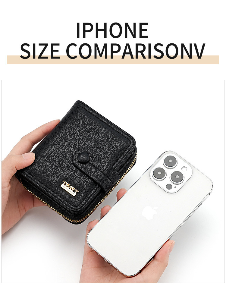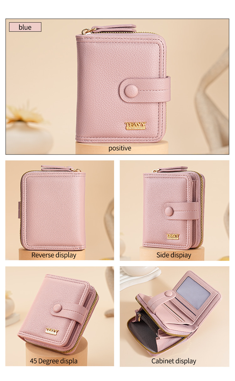 New women's wallet, short cross-border litchi pattern coin purse, high-end multi-functional wallet, large-capacity card case for women