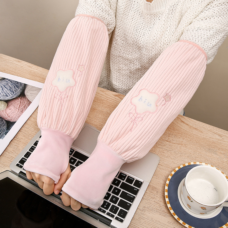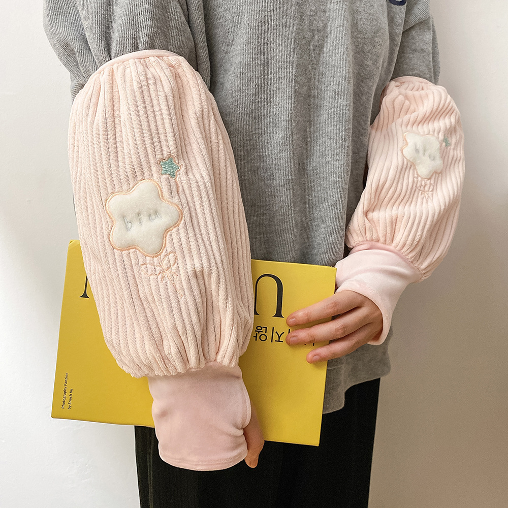 New women's winter hand protection sleeve two-in-one warm plush sleeve, ins anti-dirt cartoon glove sleeve