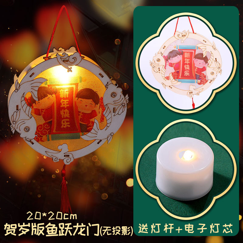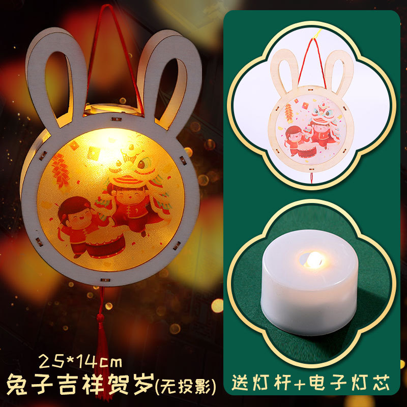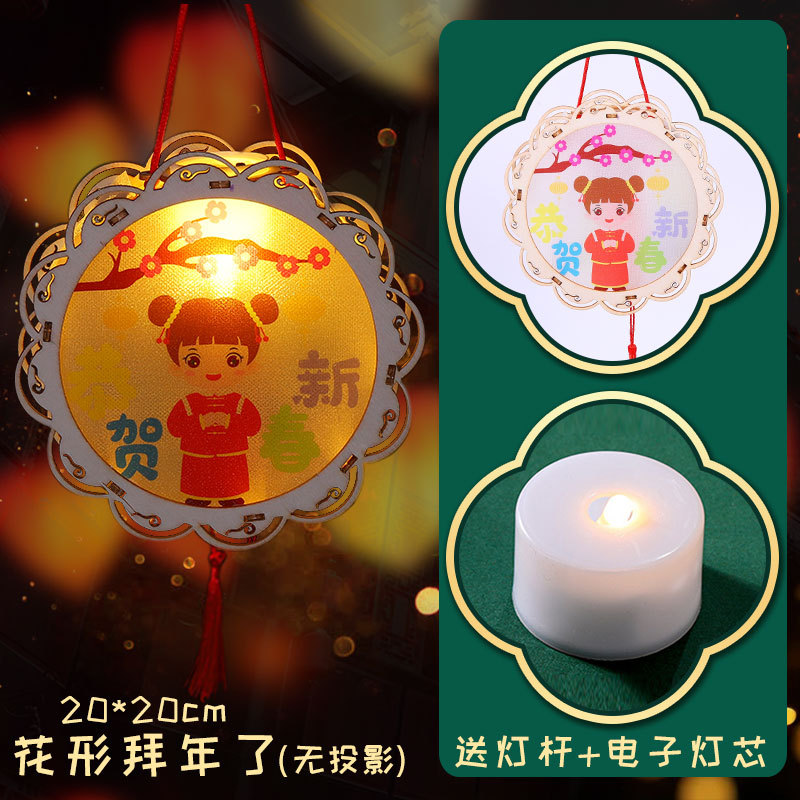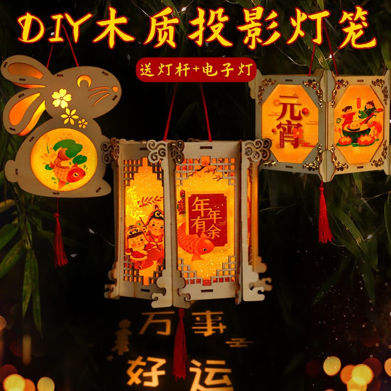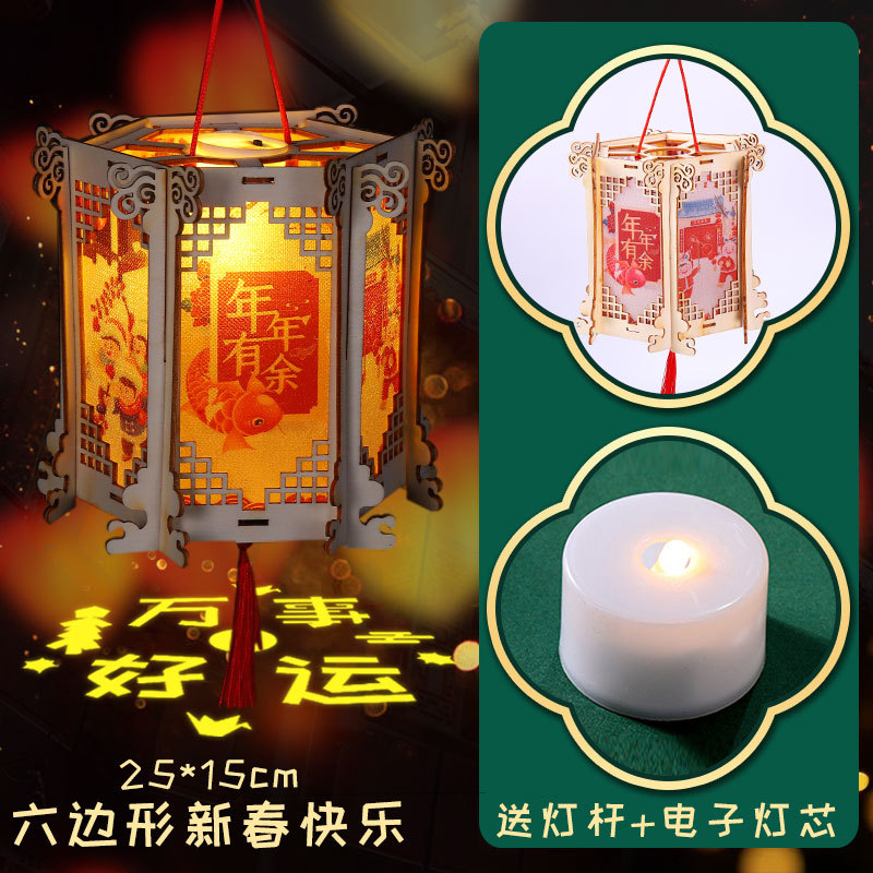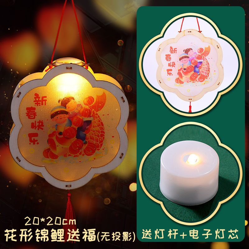 New Year and Spring Festival wooden lantern children's diy handicraft material package, ancient-style luminous hand-held small flower lantern, wooden carved palace lantern