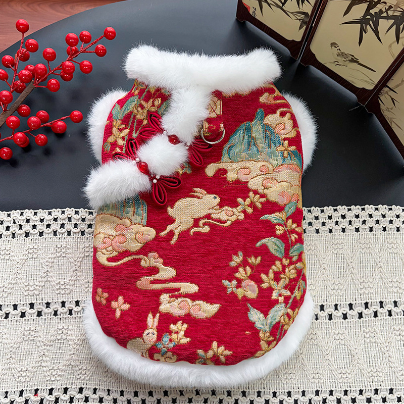 New Year Autumn and Winter double-layer thickened fleece Chinese-style jade rabbit pet dog and cat clothing, clothing and accessories, Tang suits, bichon Frises, Teddy bears