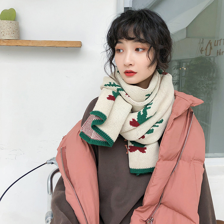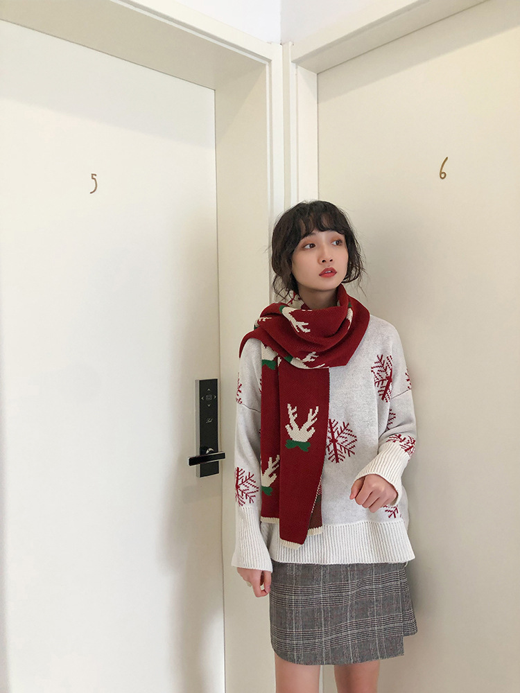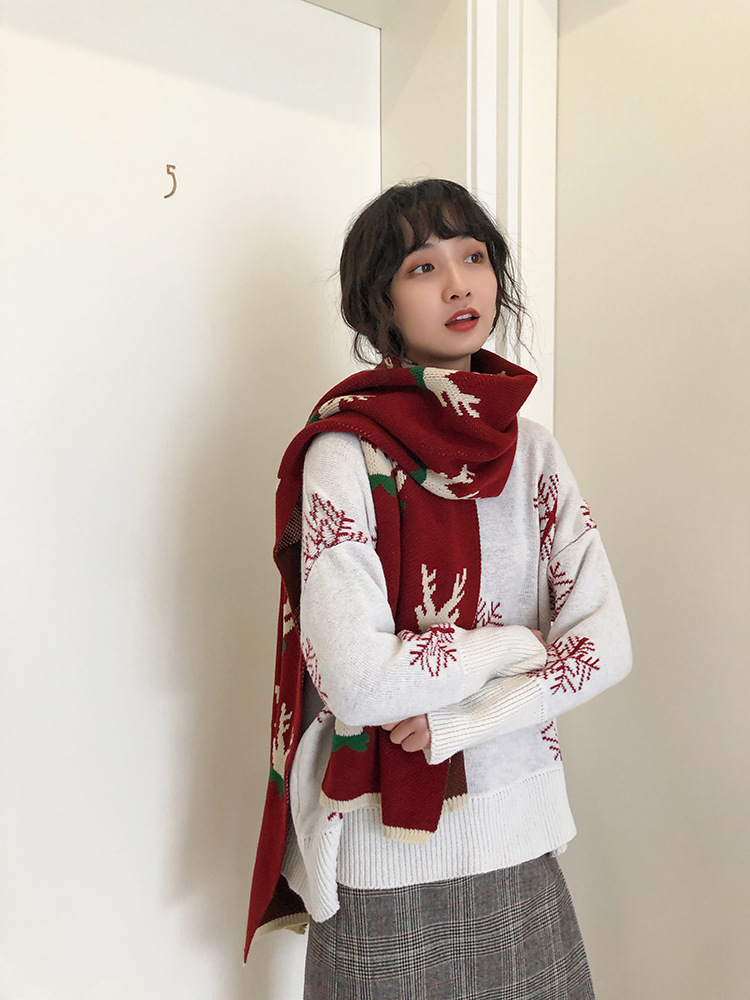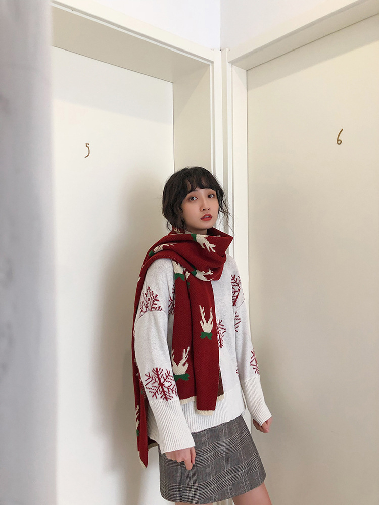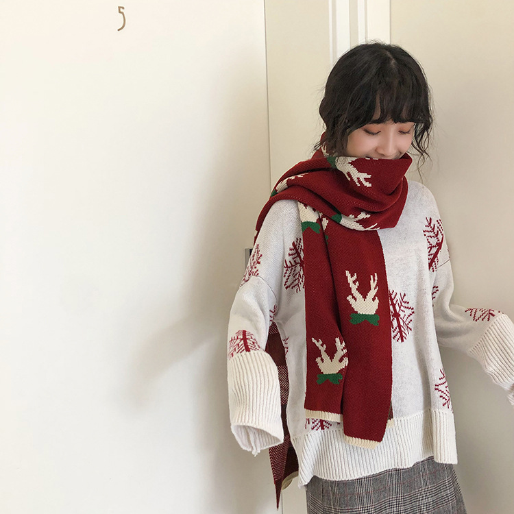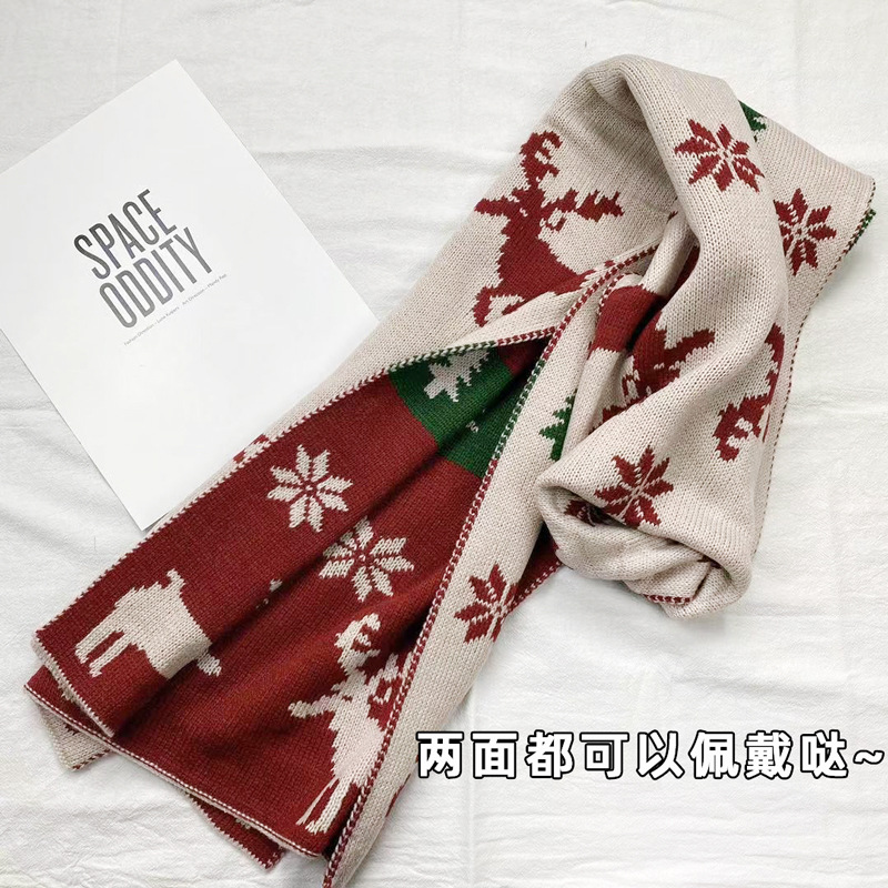 A thick Christmas-themed scarf
