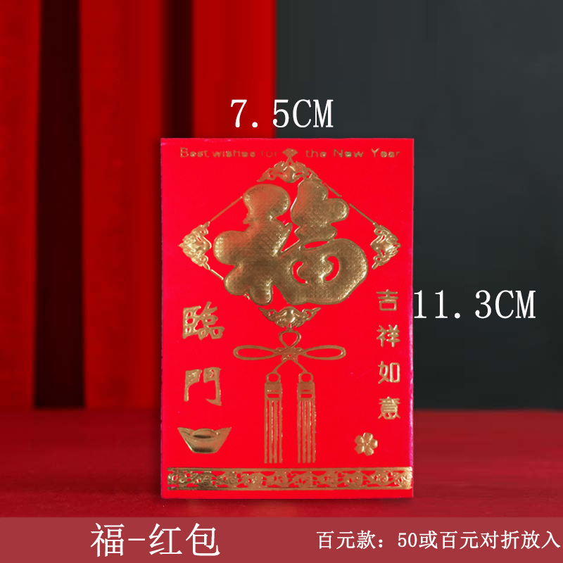 New Year's festive red envelope: 100-yuan small-sized hard paper embossed and gilded red envelope