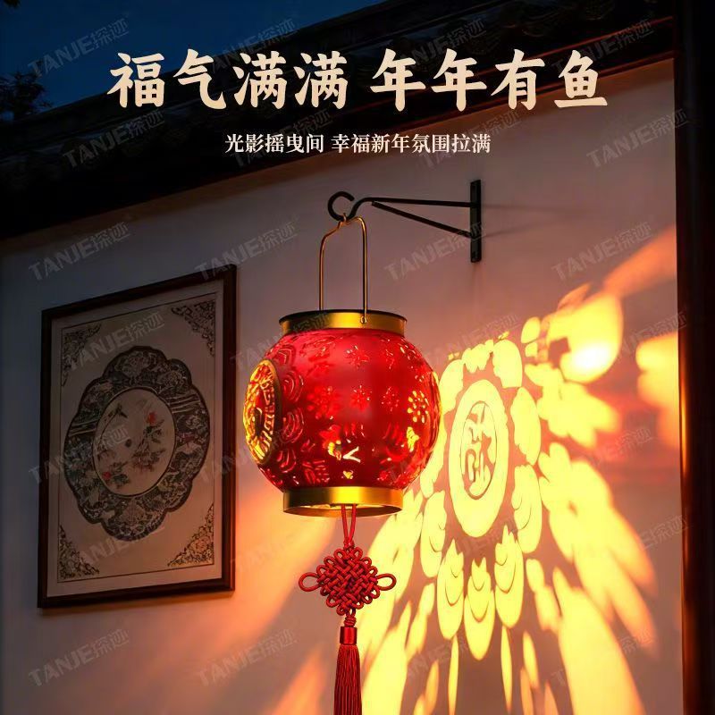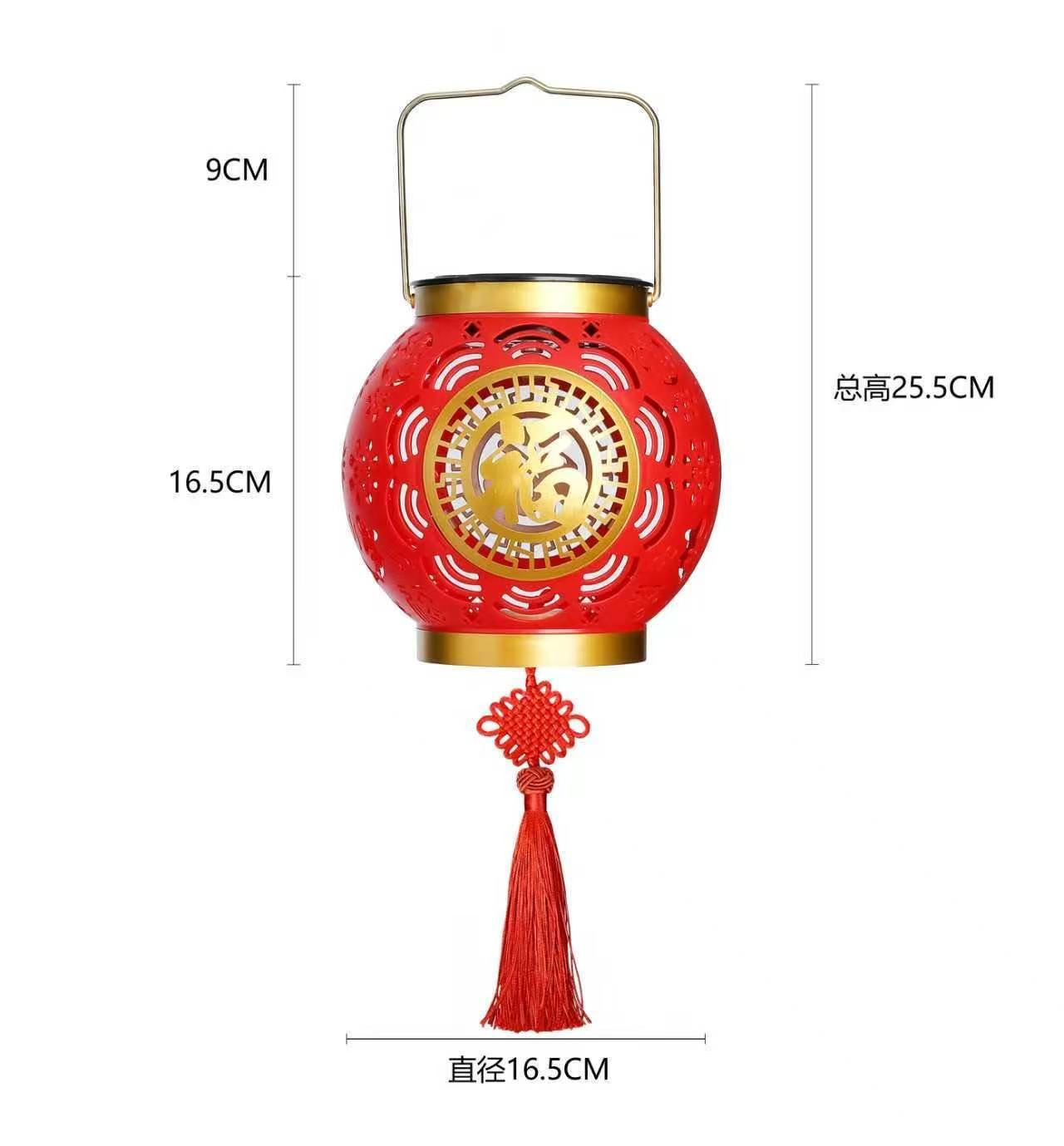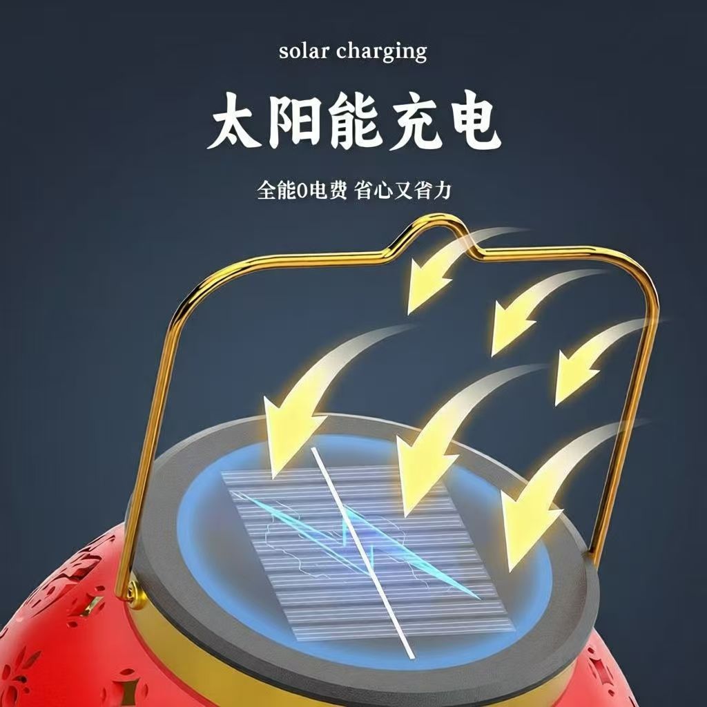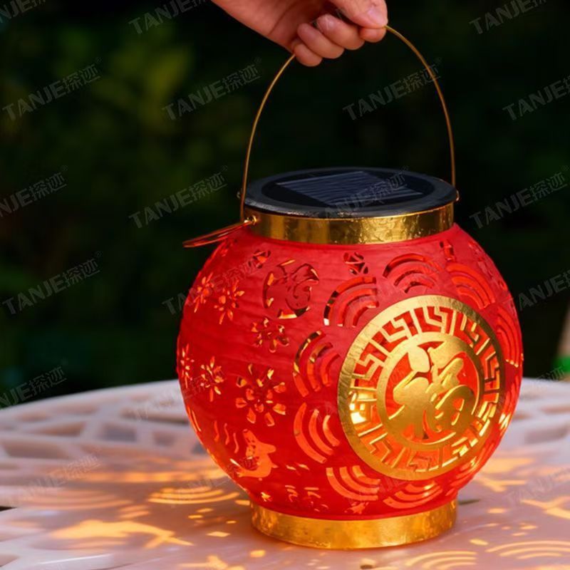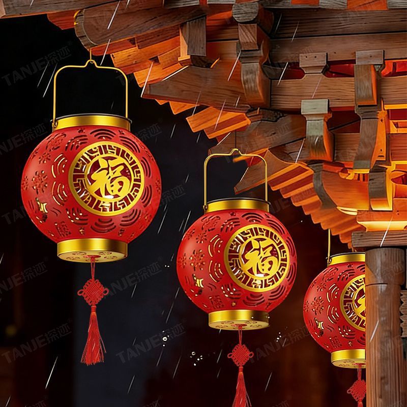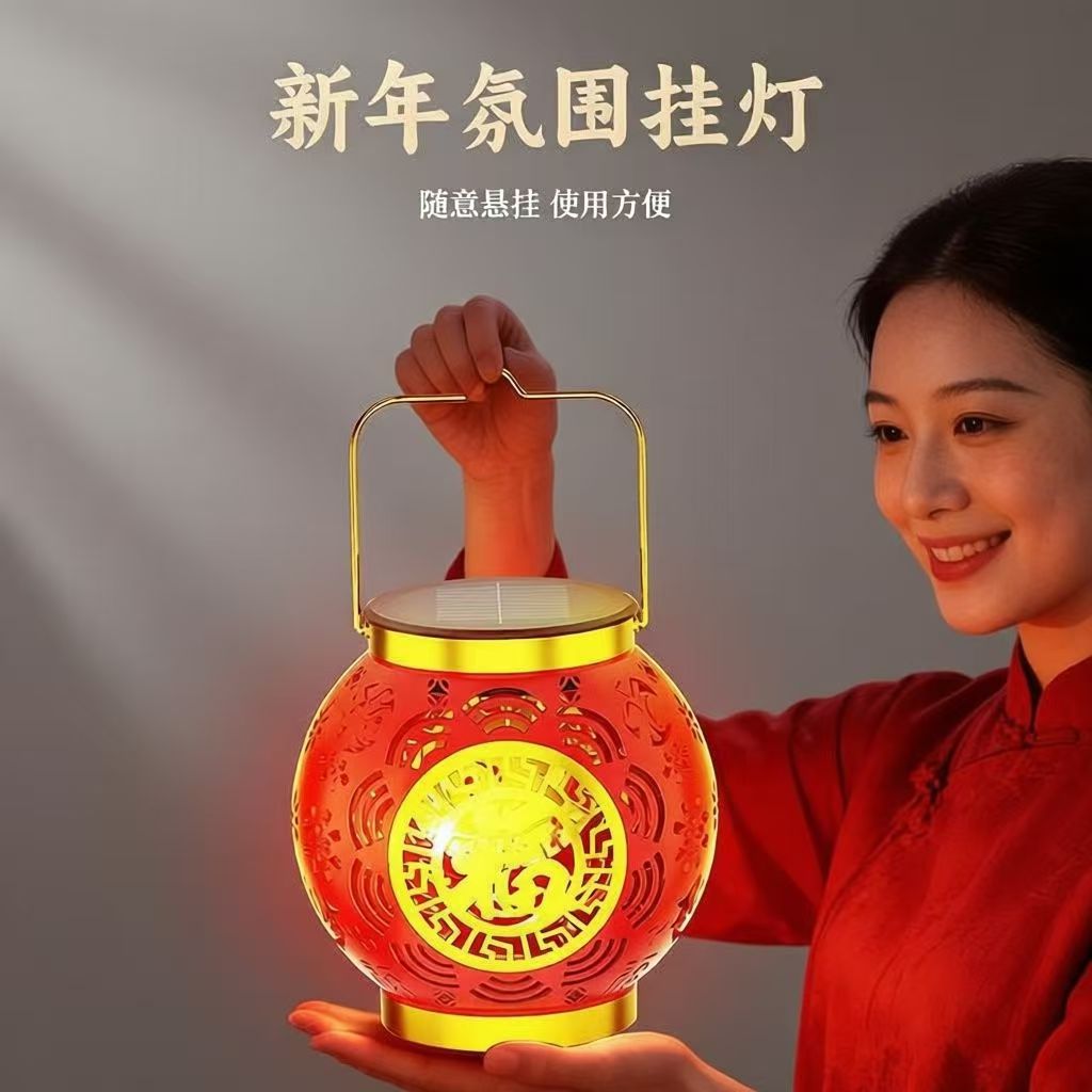 New Year's festive solar lanterns, outdoor courtyard rainproof chandeliers, red garden landscape atmosphere decoration, small night lights