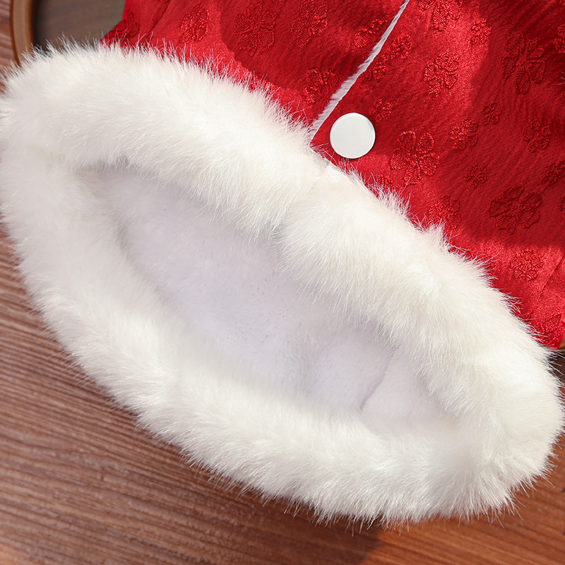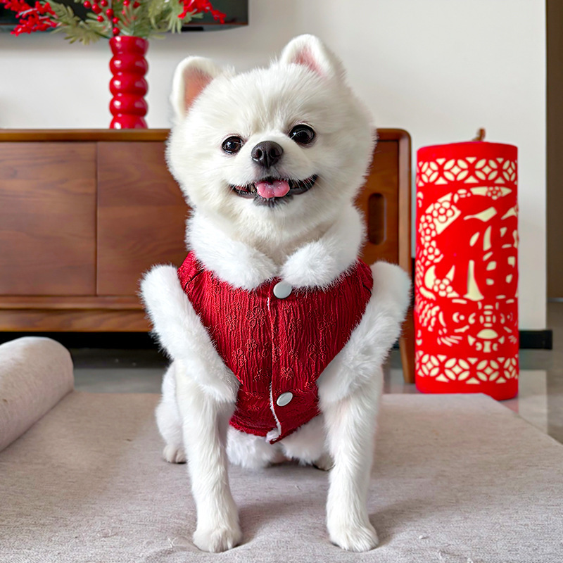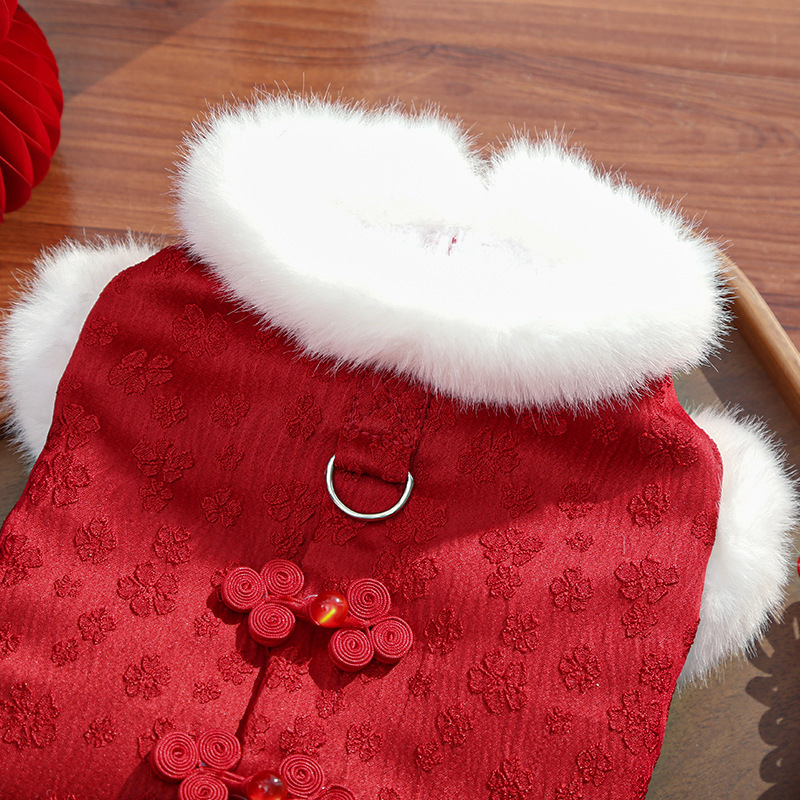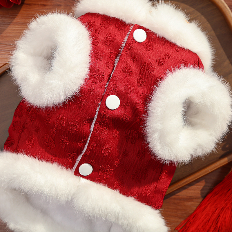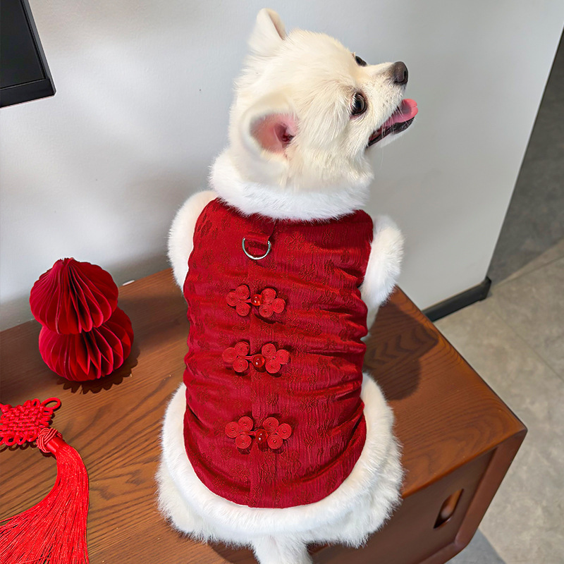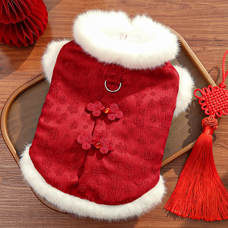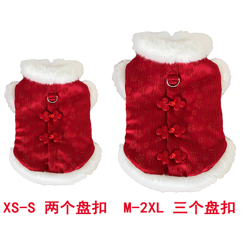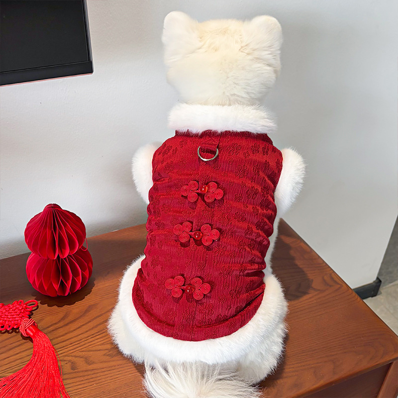 New Year's fleece autumn and winter Chinese style jacquard vest, thickened pet dog and cat clothes, clothing and accessories, Teddy Bear