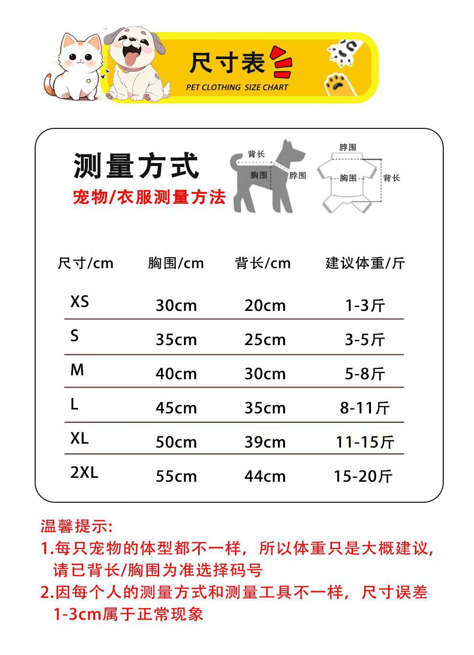 2XL(Chest circumference 55cm, 15-20 pounds)