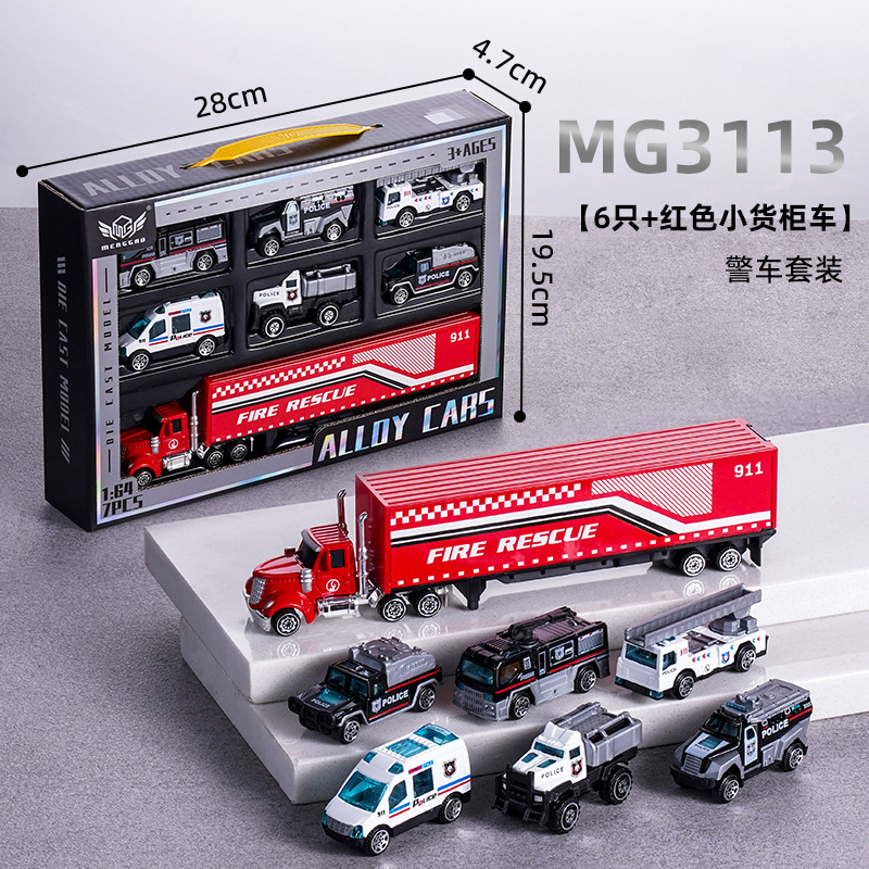 Gift box set [6 vehicles + small truck] Police car alloy vehicle 3113
