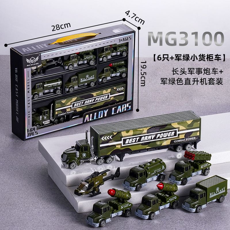 Gift box set [6 vehicles + small truck] Military alloy vehicle 3100