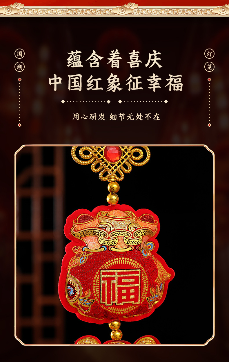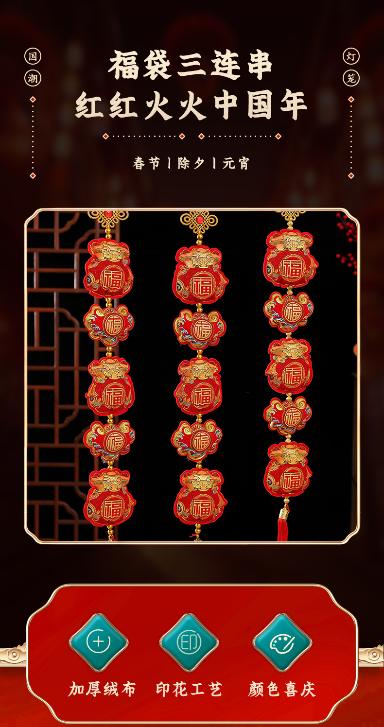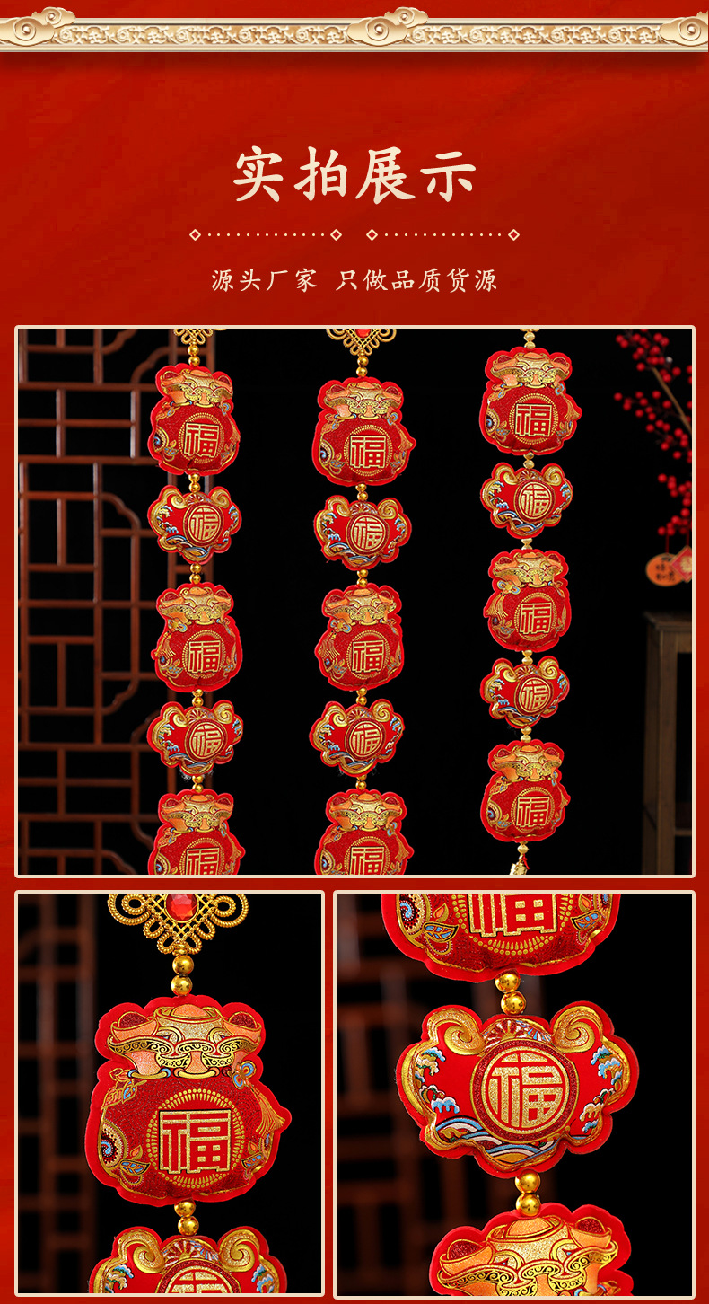 New Year's plush lucky bag three-string pendant manufacturer wholesale Spring Festival housewarming celebration items, entrance hall indoor hanging decorations