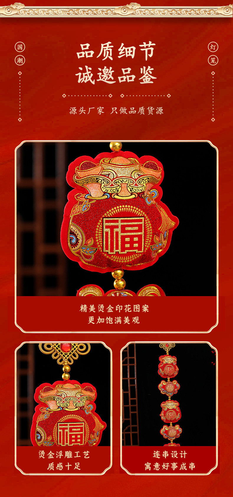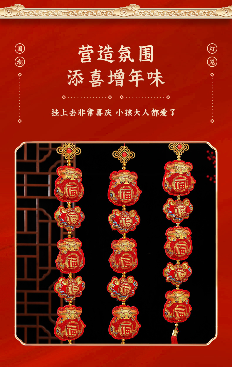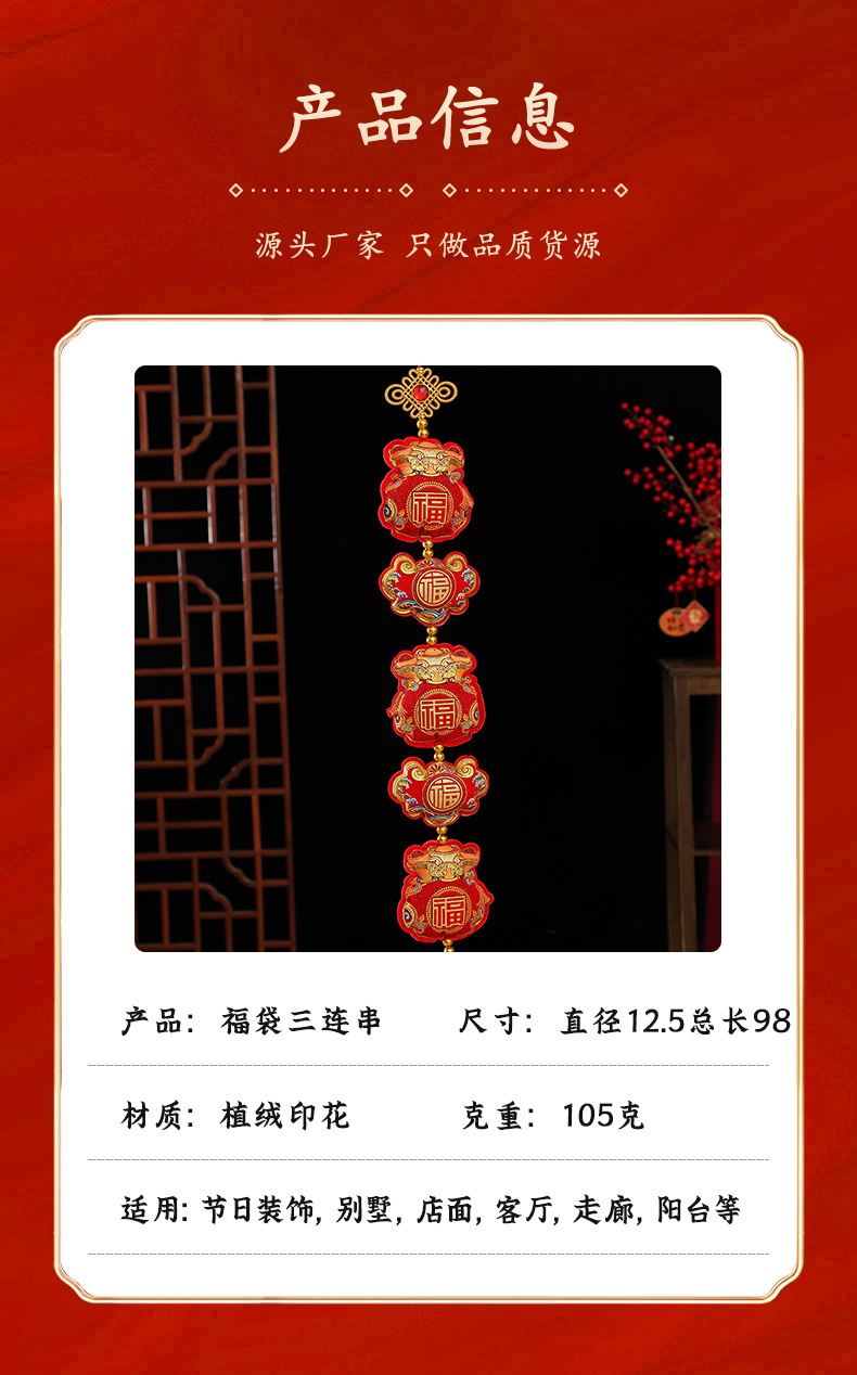 New Year's plush lucky bag three-string pendant manufacturer wholesale Spring Festival housewarming celebration items, entrance hall indoor hanging decorations