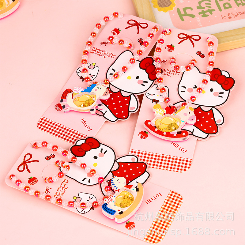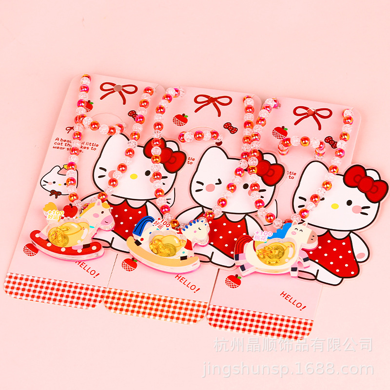 New Year's Shining Rocking Horse necklace with beads, Year of the Horse ingot blessing toy, baby birthday gift, girls' accessories