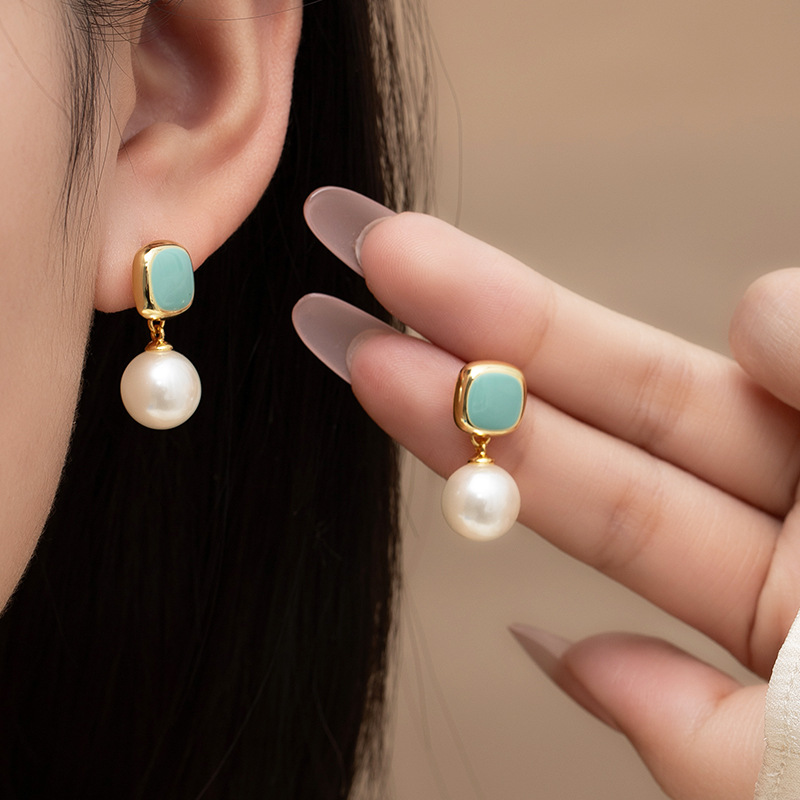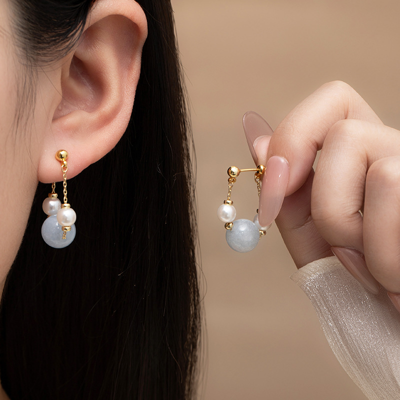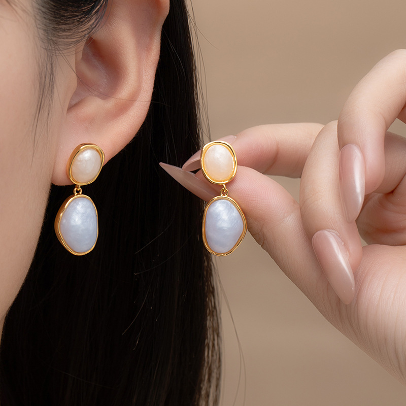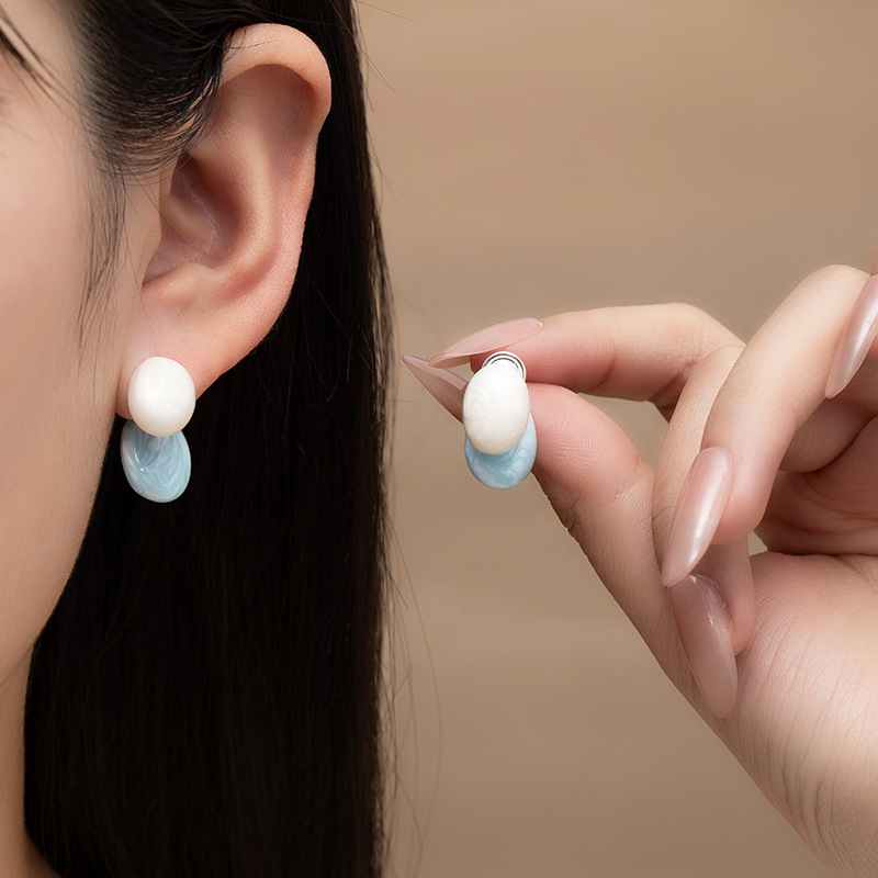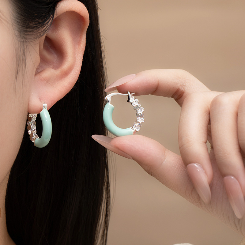 Niche ins minimalist colored drip glaze dopamine earrings, gentle and creamy C-shaped blue large circle ear rings for round faces