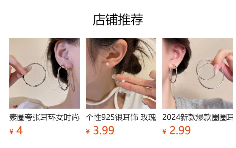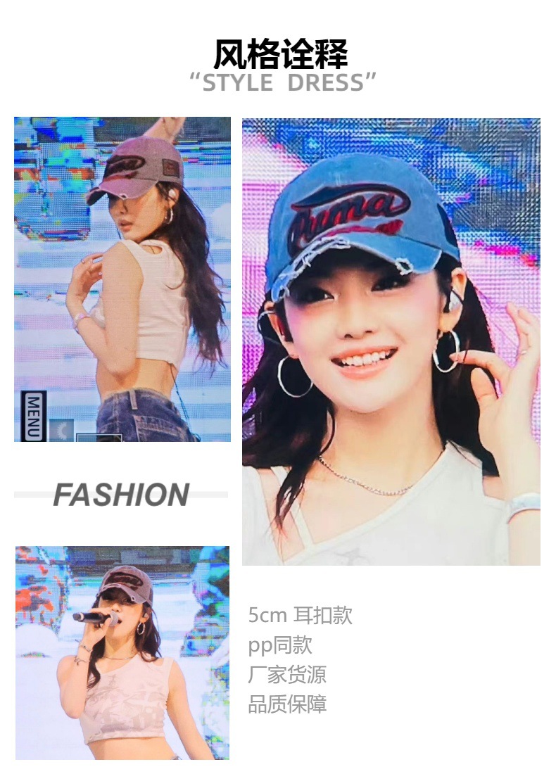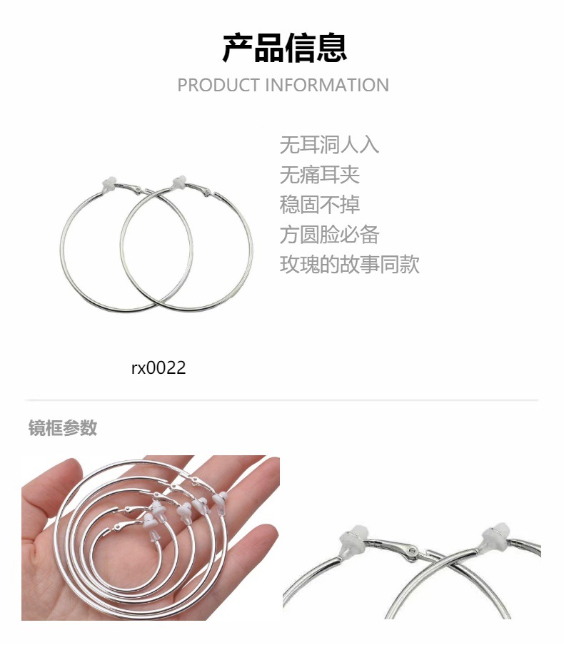 Ning Yizhuo's same style silver 5cm large ear ring earrings without ear piercings, large circle round face earrings