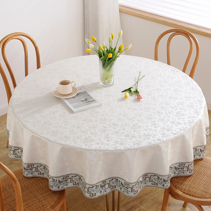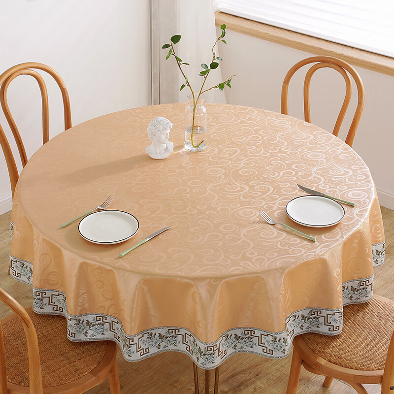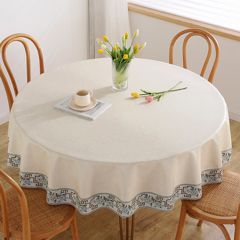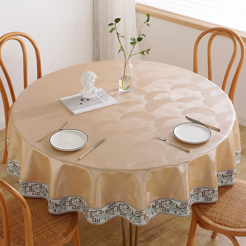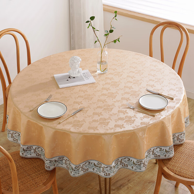 No-wash restaurant household fabric round table, hotel oil-proof, restaurant Chinese-style waterproof round heat-resistant tablecloth, fabric tablecloth