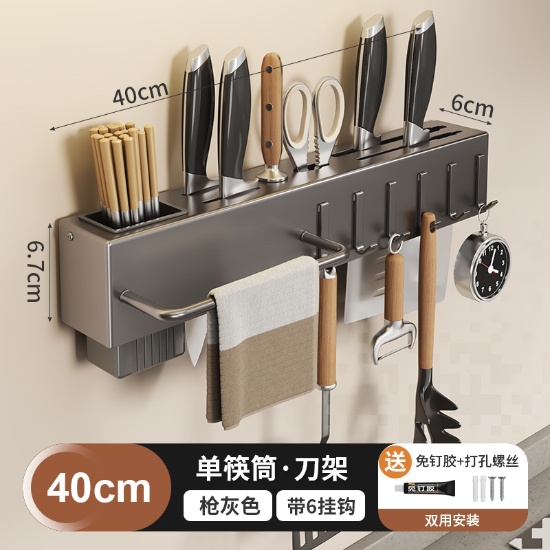 Non-drilling kitchen multi-functional storage rack, wall-mounted kitchen knife, chopstick and knife storage rack, organizing utensils wall hanging rack
