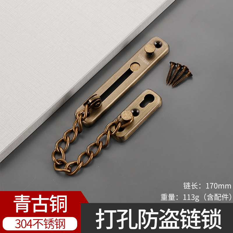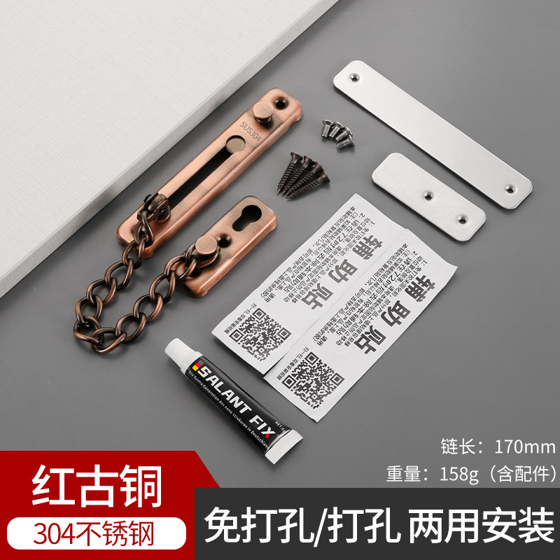 Non-perforated stainless steel anti-theft chain, household thickened door chain, hotel anti-theft door bolt, latch, lock, button anti-theft chain full imageNon-perforated stainless steel anti-theft chain, household thickened door chain, hotel anti-theft door bolt, latch, lock, button anti-theft chain details PictureNon-perforated stainless steel anti-theft chain, household thickened door chain, hotel anti-theft door bolt, latch, lock, button anti-theft chain Specification imageNon-perforated stainless steel anti-theft chain, household thickened door chain, hotel anti-theft door bolt, latch, lock, button anti-theft chain Application ScenarioNon-perforated stainless steel anti-theft chain, household thickened door chain, hotel anti-theft door bolt, latch, lock, button anti-theft chain Item Picture