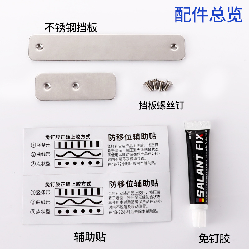 Hole-free accessories, stoppers + nail-free glue