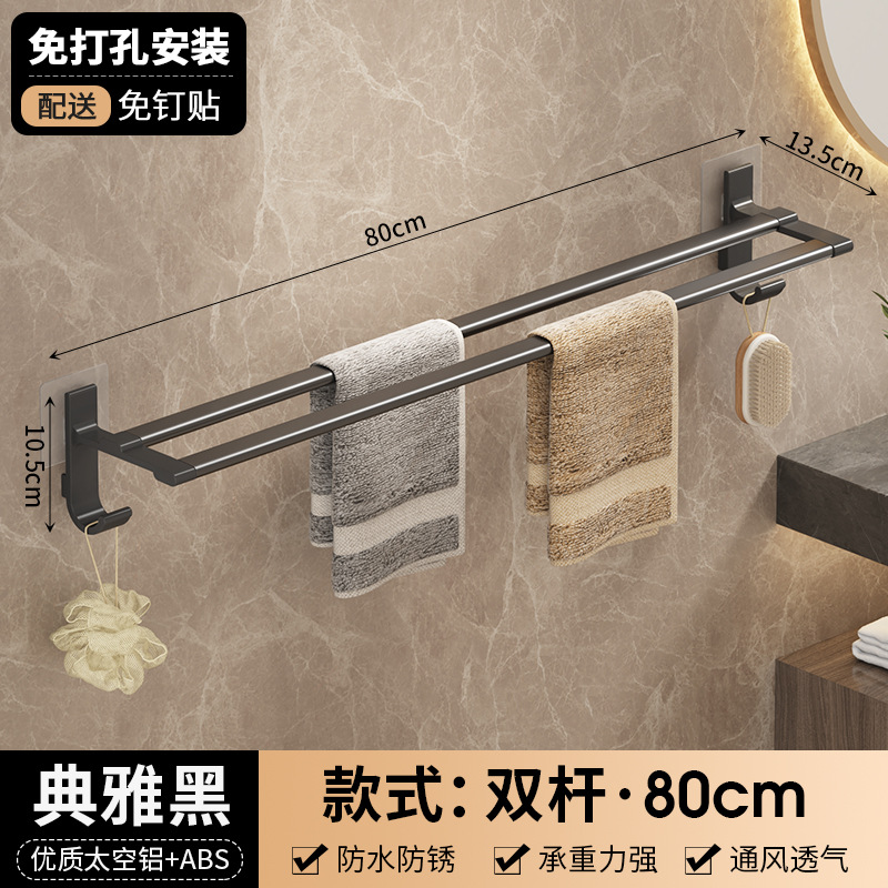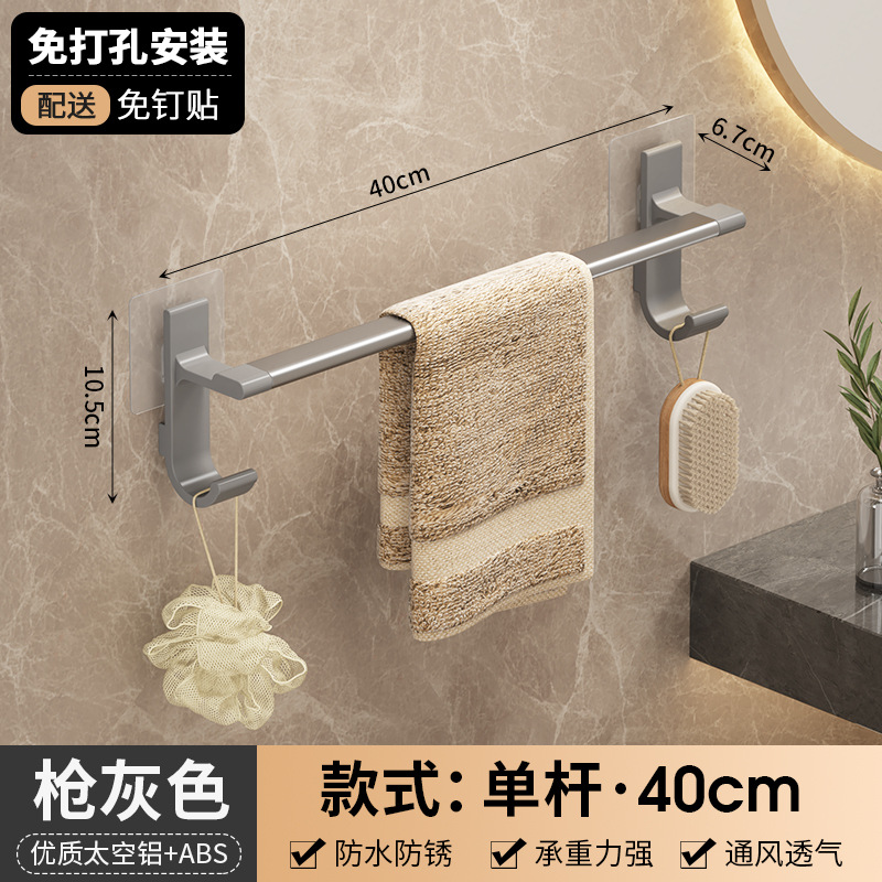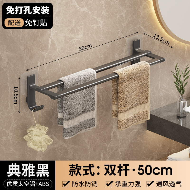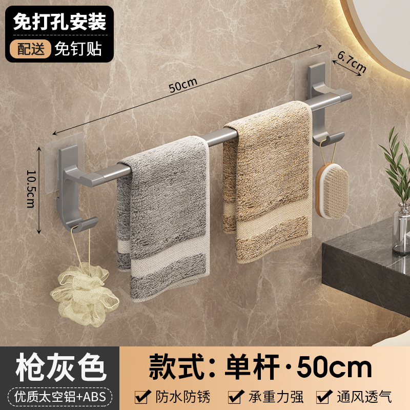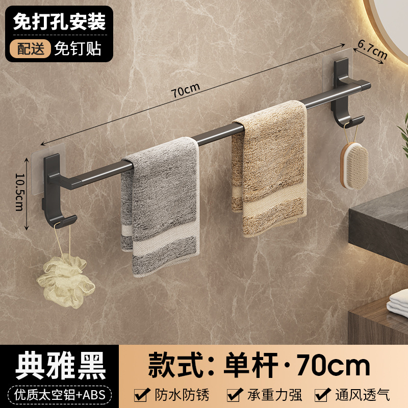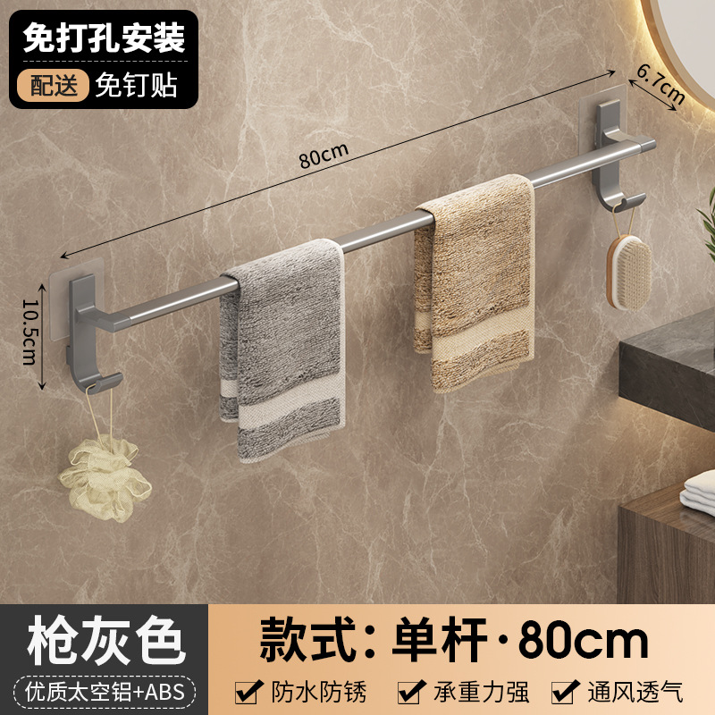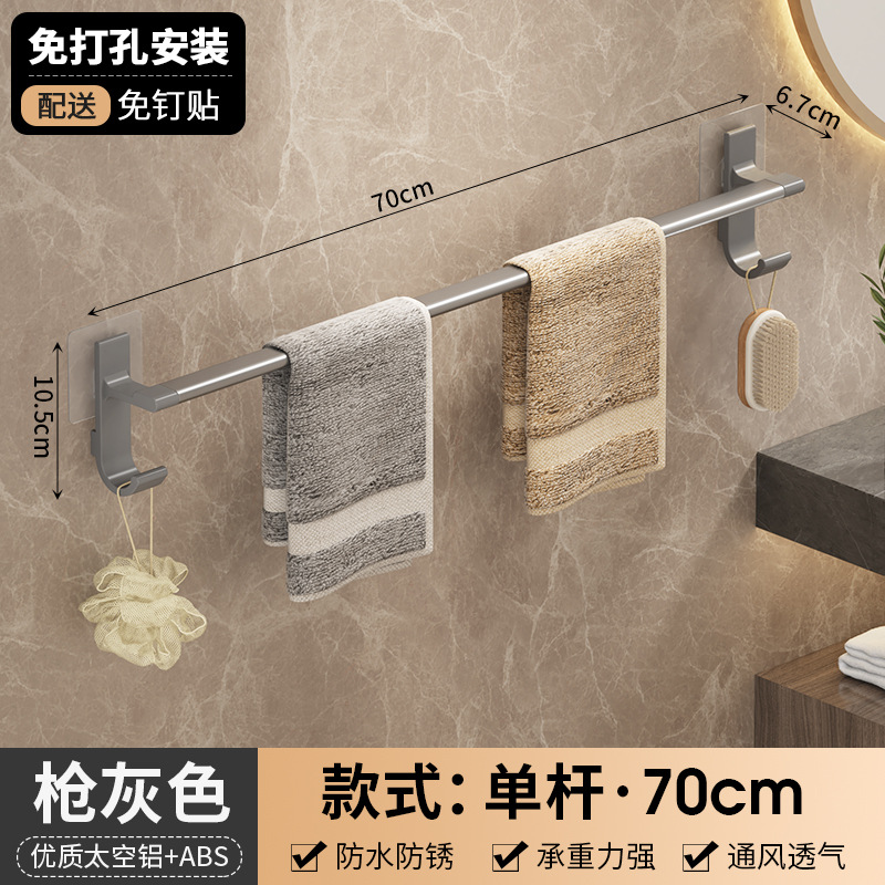 Non-perforated towel rack, bathroom wall-mounted towel pole, storage rack, toilet and washroom storage hanging rack